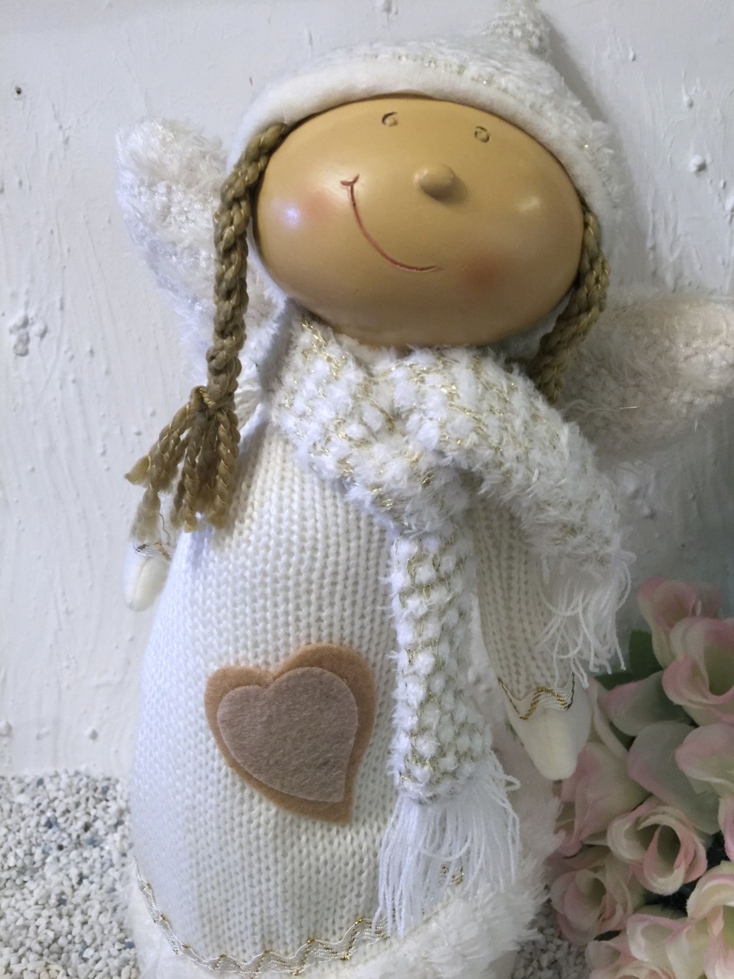 Hier zeigen wir Ihnen einen bezaubernden Engel in den lieblich, zarten Pastellfarben weiß und crem