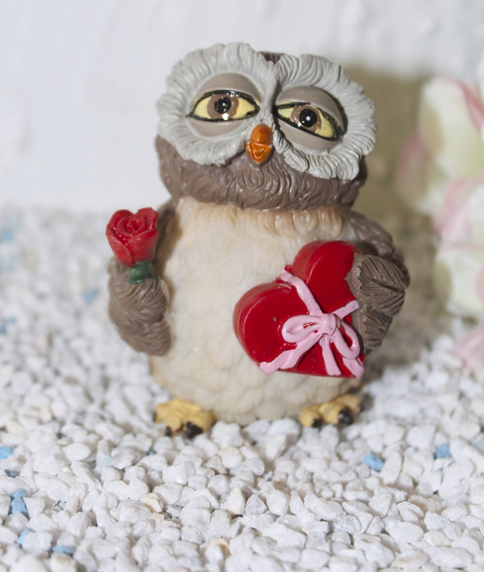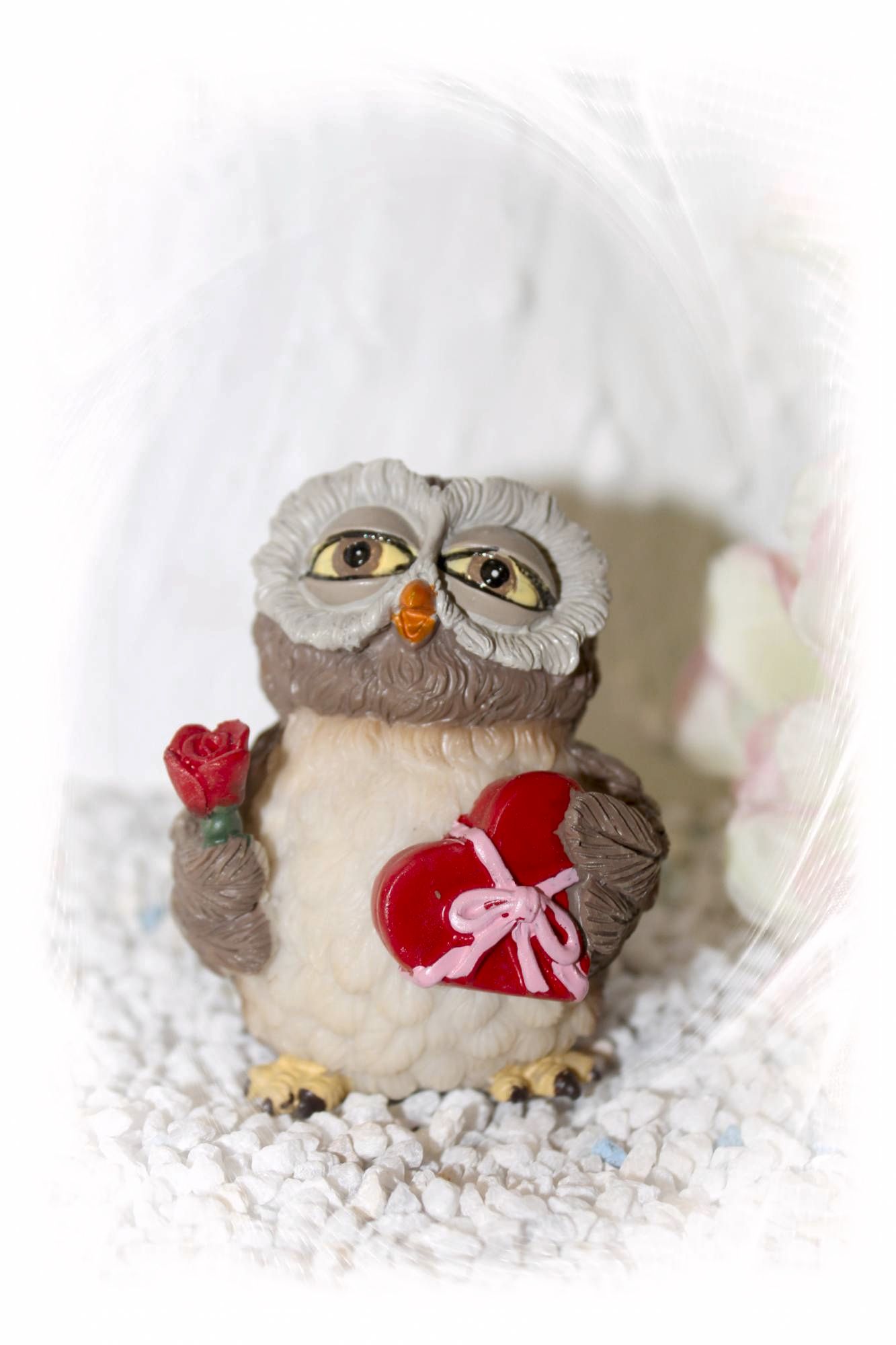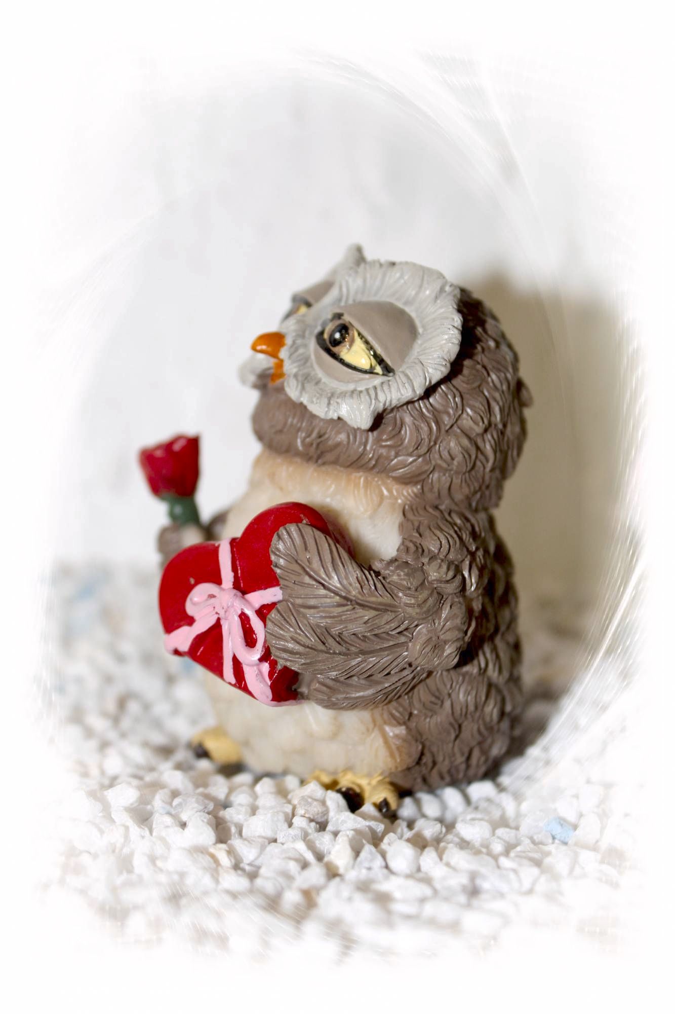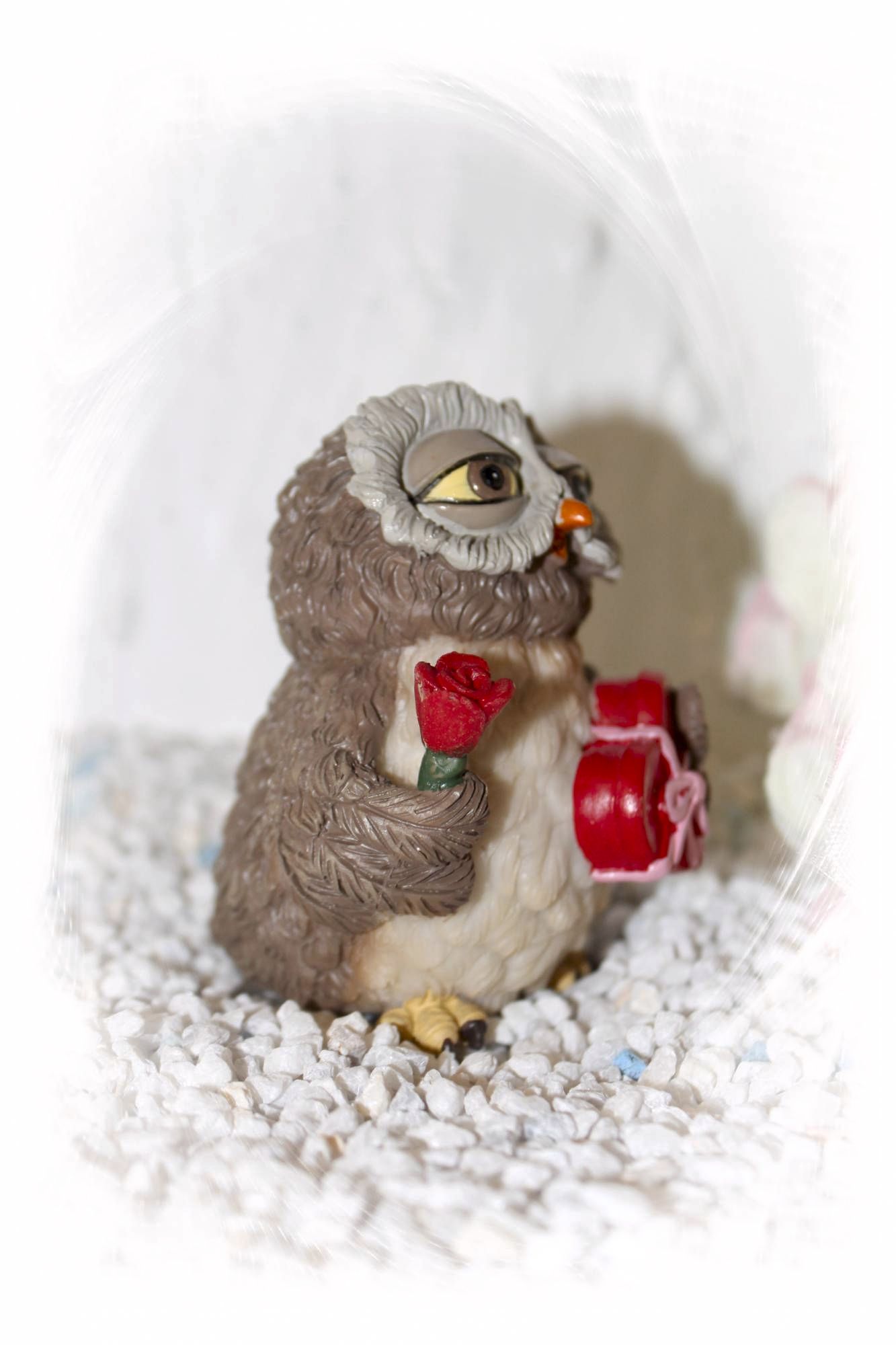 Eine tolle Eule mit Rose und Geschenk.