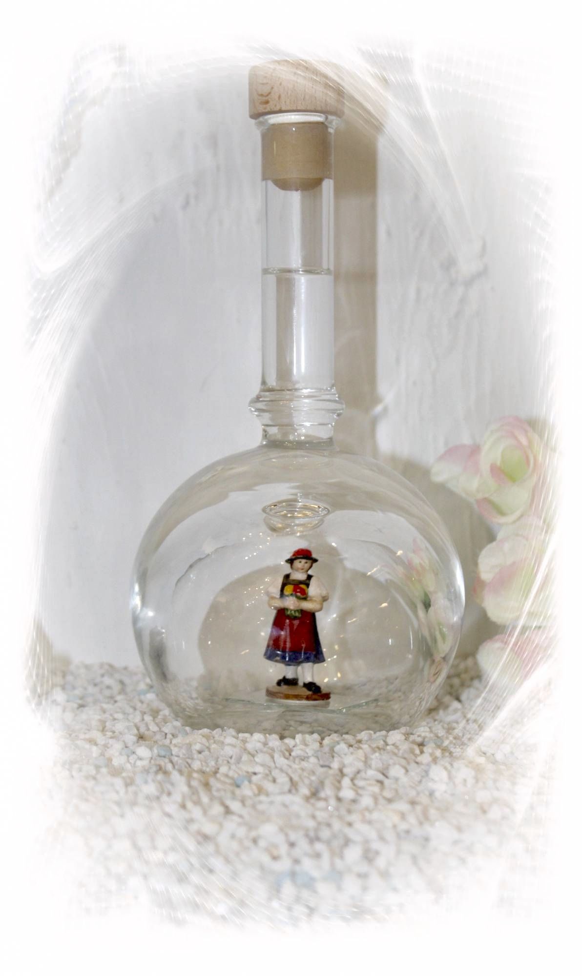 Hier zeigen wir Ihnen eine edle gefertigte Glasflasche mit einem Schwarzwaldmädl