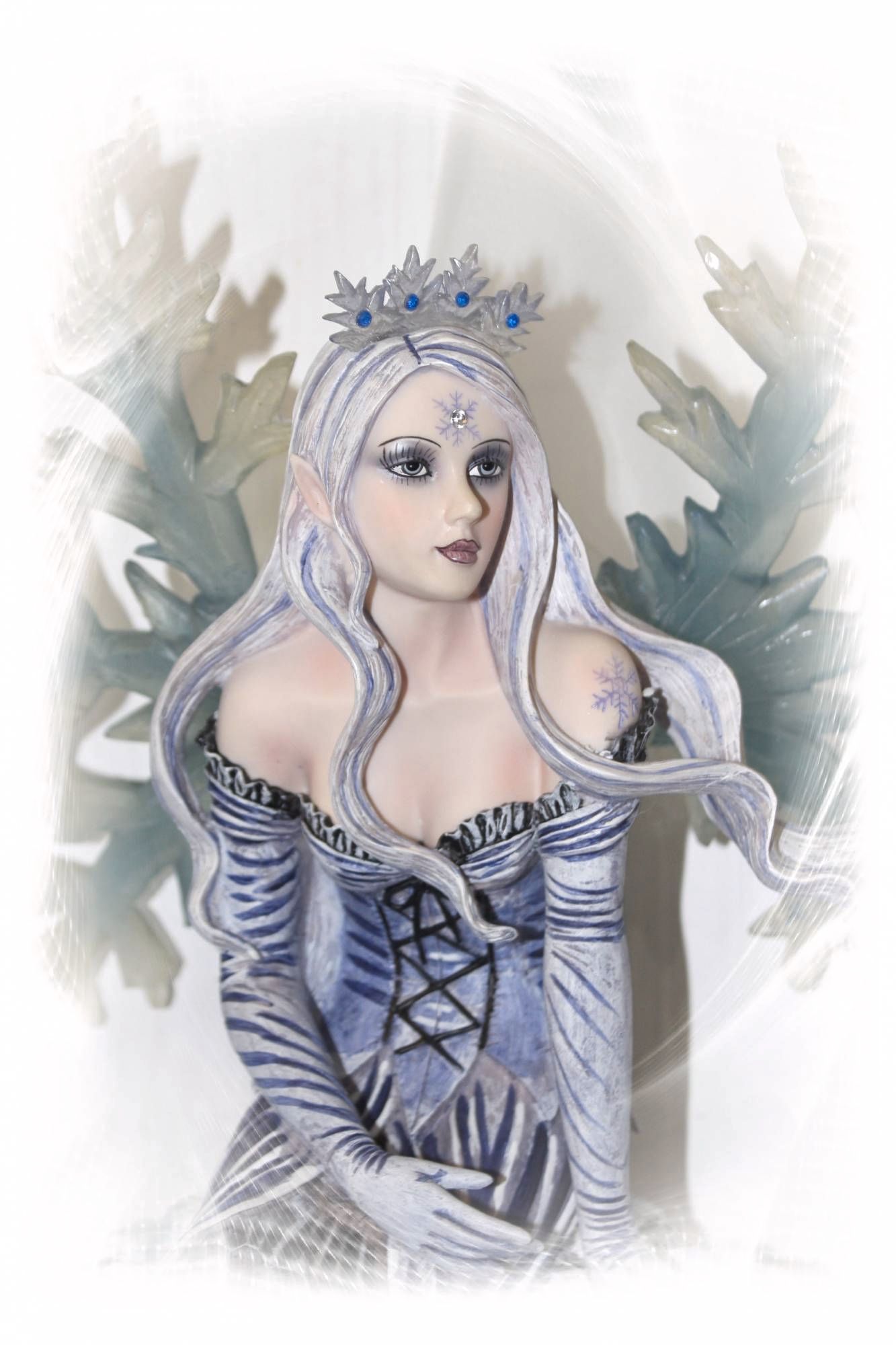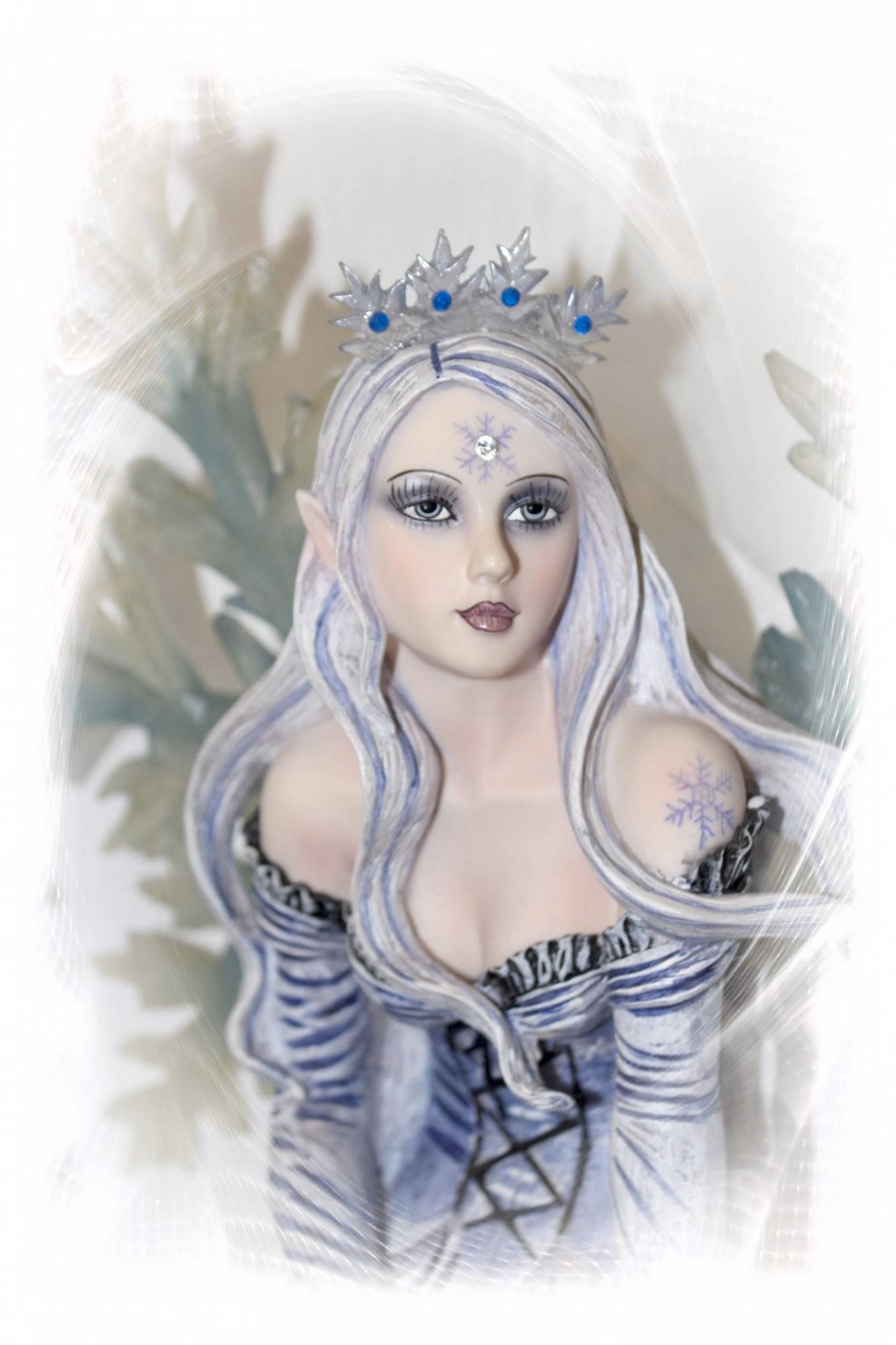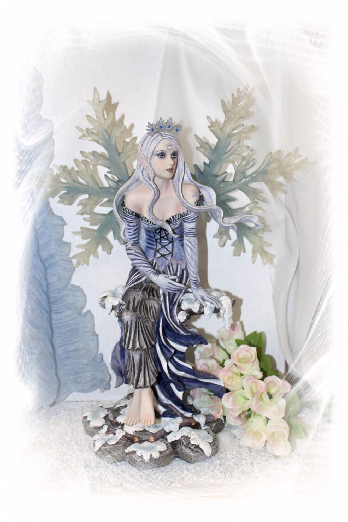 Die Eiskönigin im Winterkleid wacht über die Eiswelt.Das Gesicht und die feinen Details sind einzigartig und geben diesen Elfen ein märchenhaftes Aussehen.
