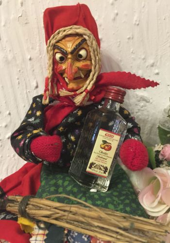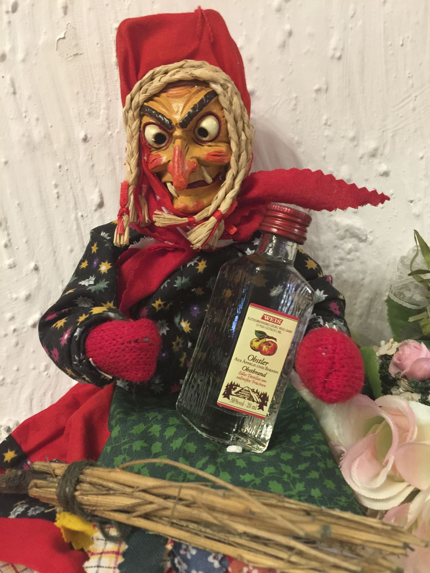 Die freche Hexe hat ein kleines rustikales Schnäpsle dabei.