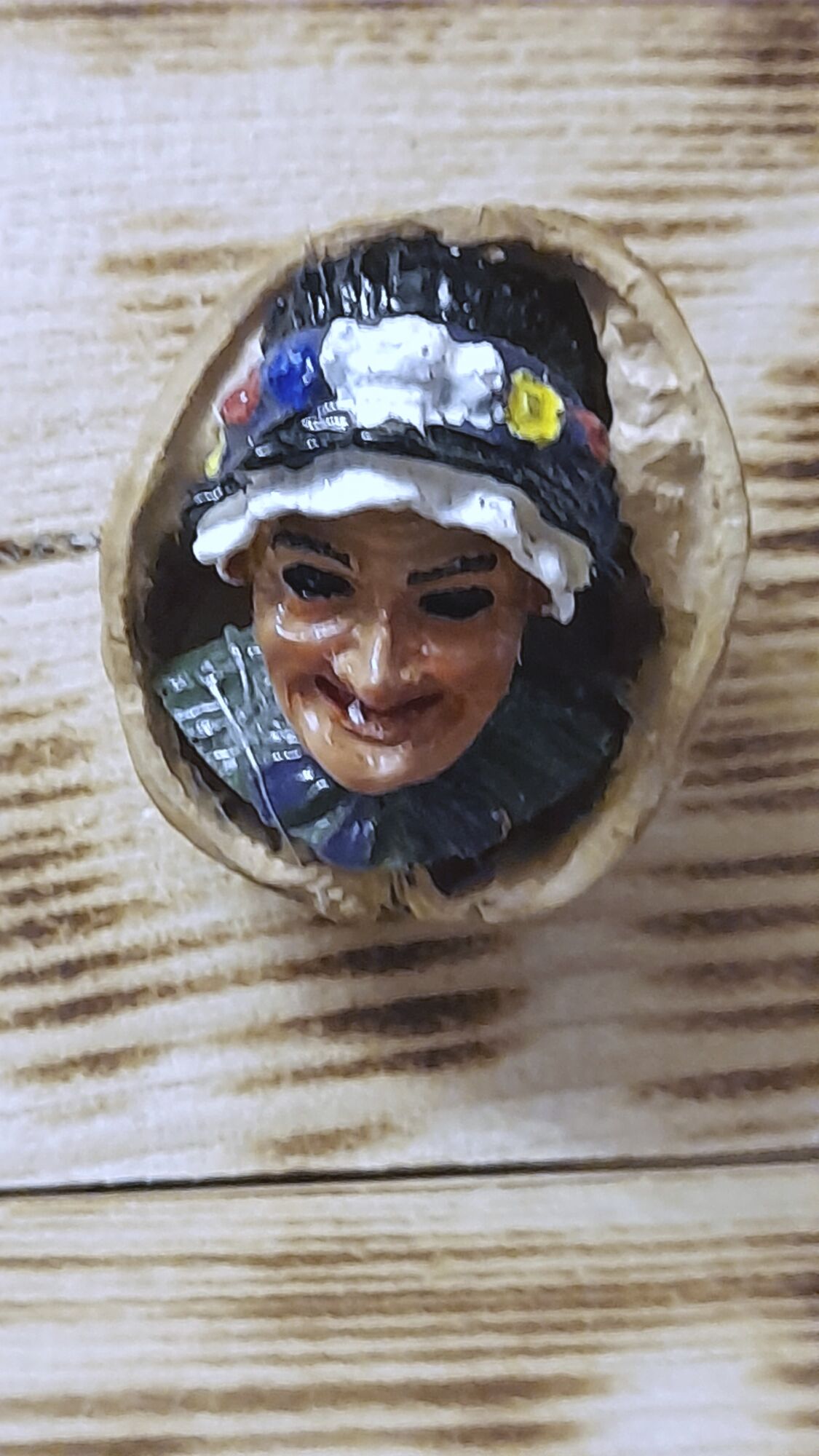 Handgefertigte Miniaturmäskle in einer schönen Walnussschale.