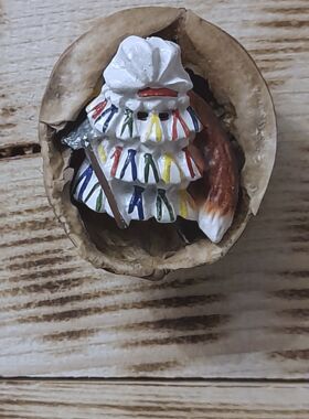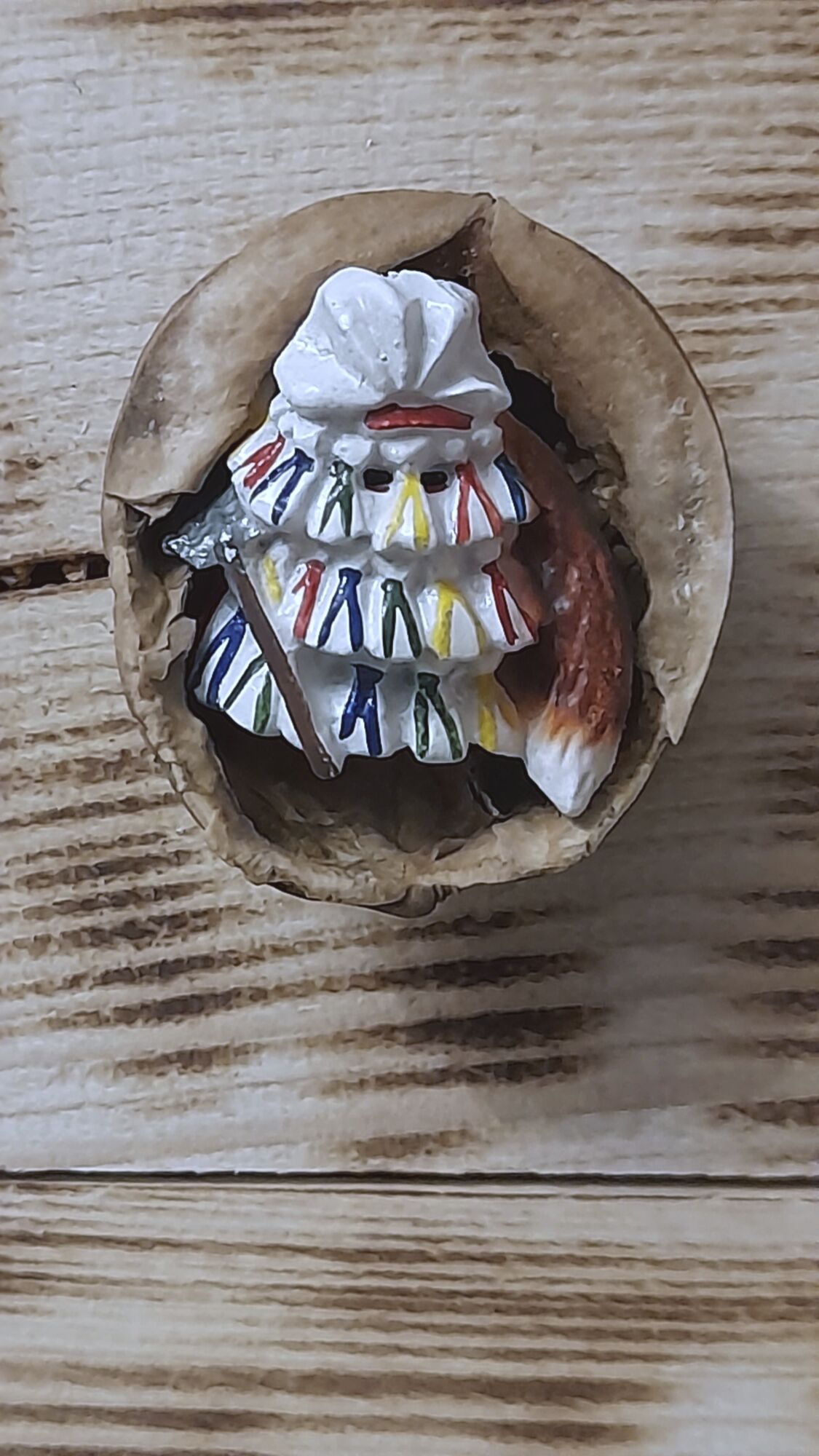 Handgefertigte Miniaturmäskle in einer schönen Walnussschale.
