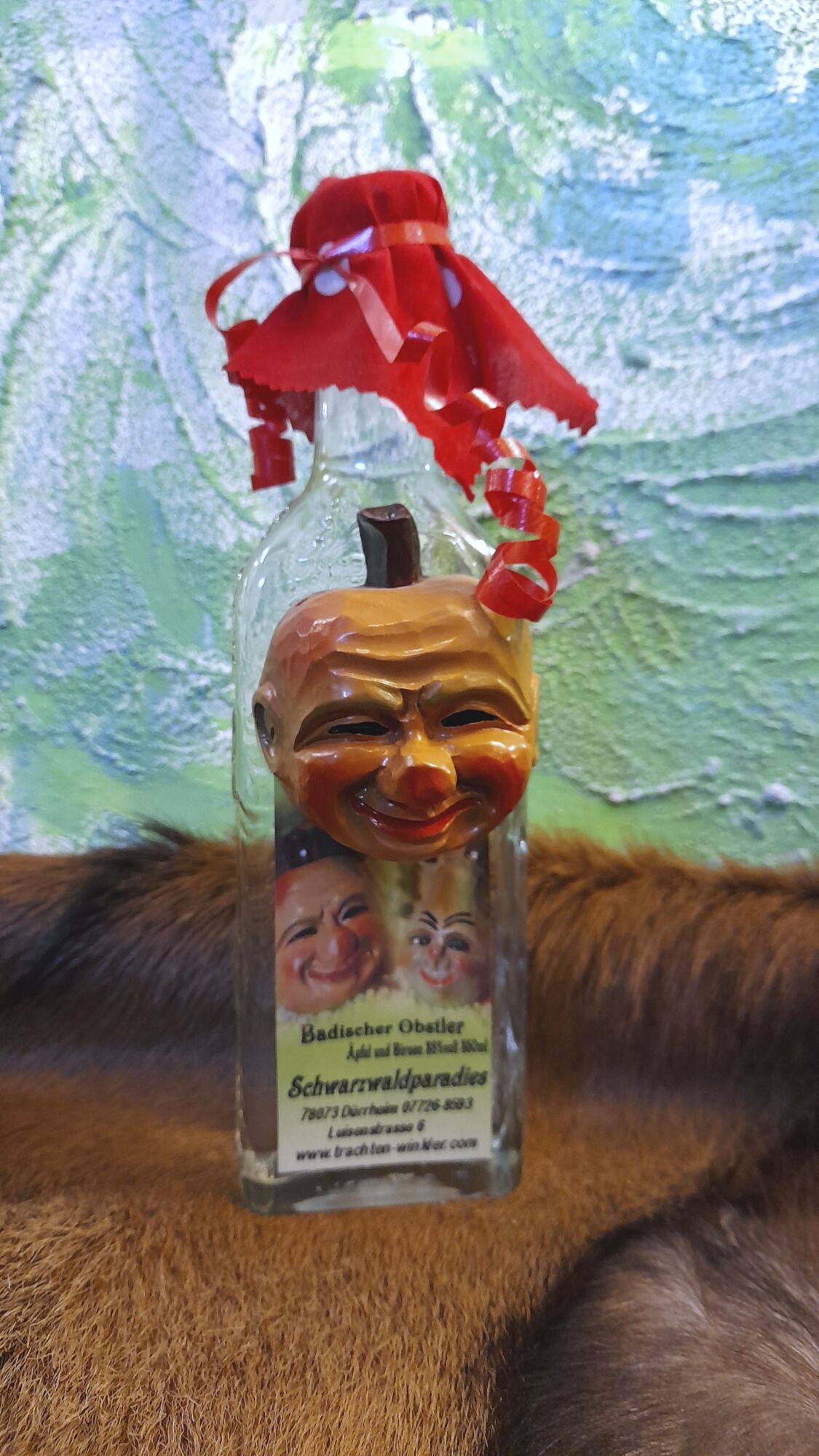 Leckerer Badischer Obstler, in einer schönen Schwarzwaldflasche mit Schwarzwaldmotiven,Tüchlein und