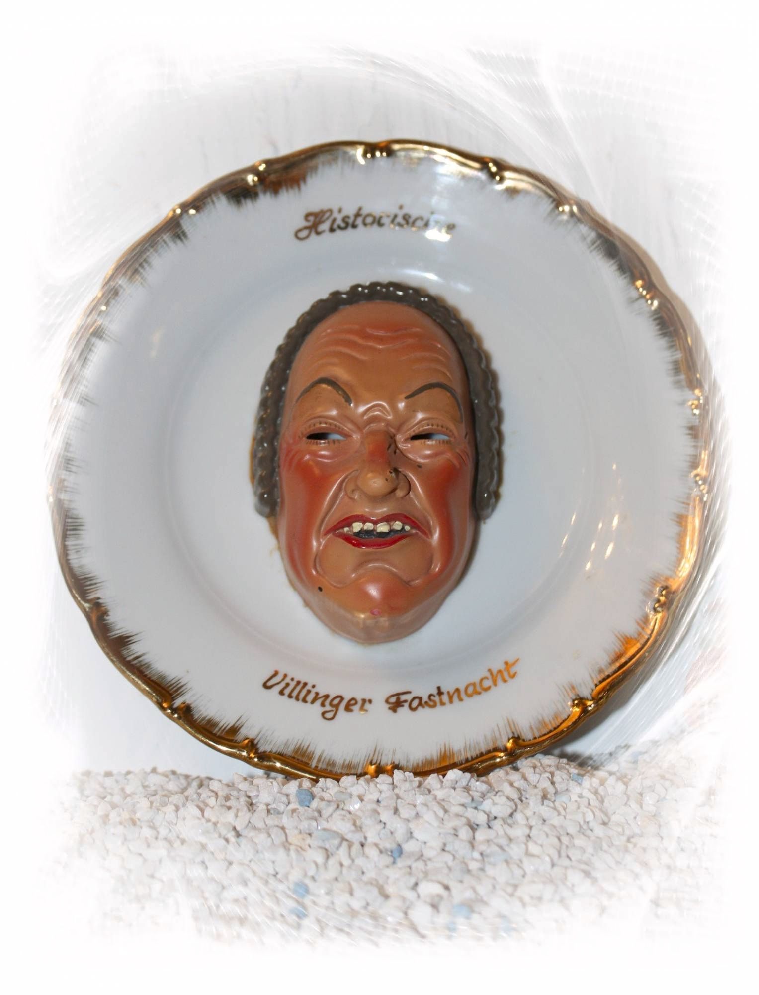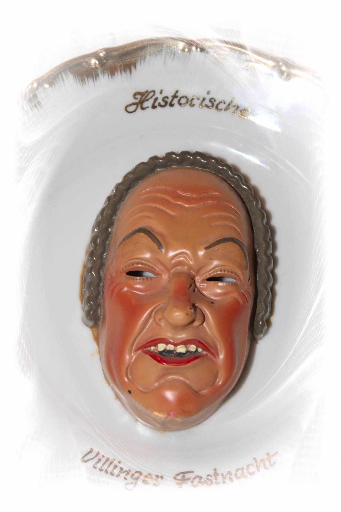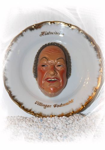 Hier ein Wandteller mit dem Mäskle vom Villinger Surhebel aus Villingen im Schwarzwald