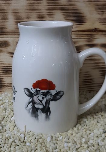 Mit einer lustigen Milchkuh im Glanzdekor.