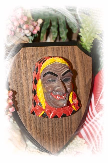 Die Mäskle sind liebevoll in Handarbeit bemahlt und von uns auf schönen furnierten Holzbretter aufgebracht.