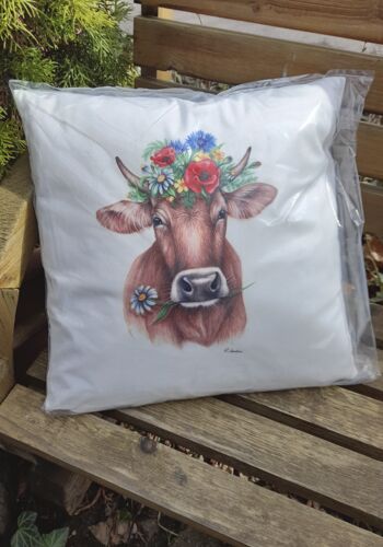 Schwarzwaldkissen Kuh mit Blumen