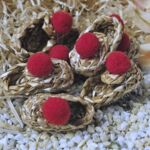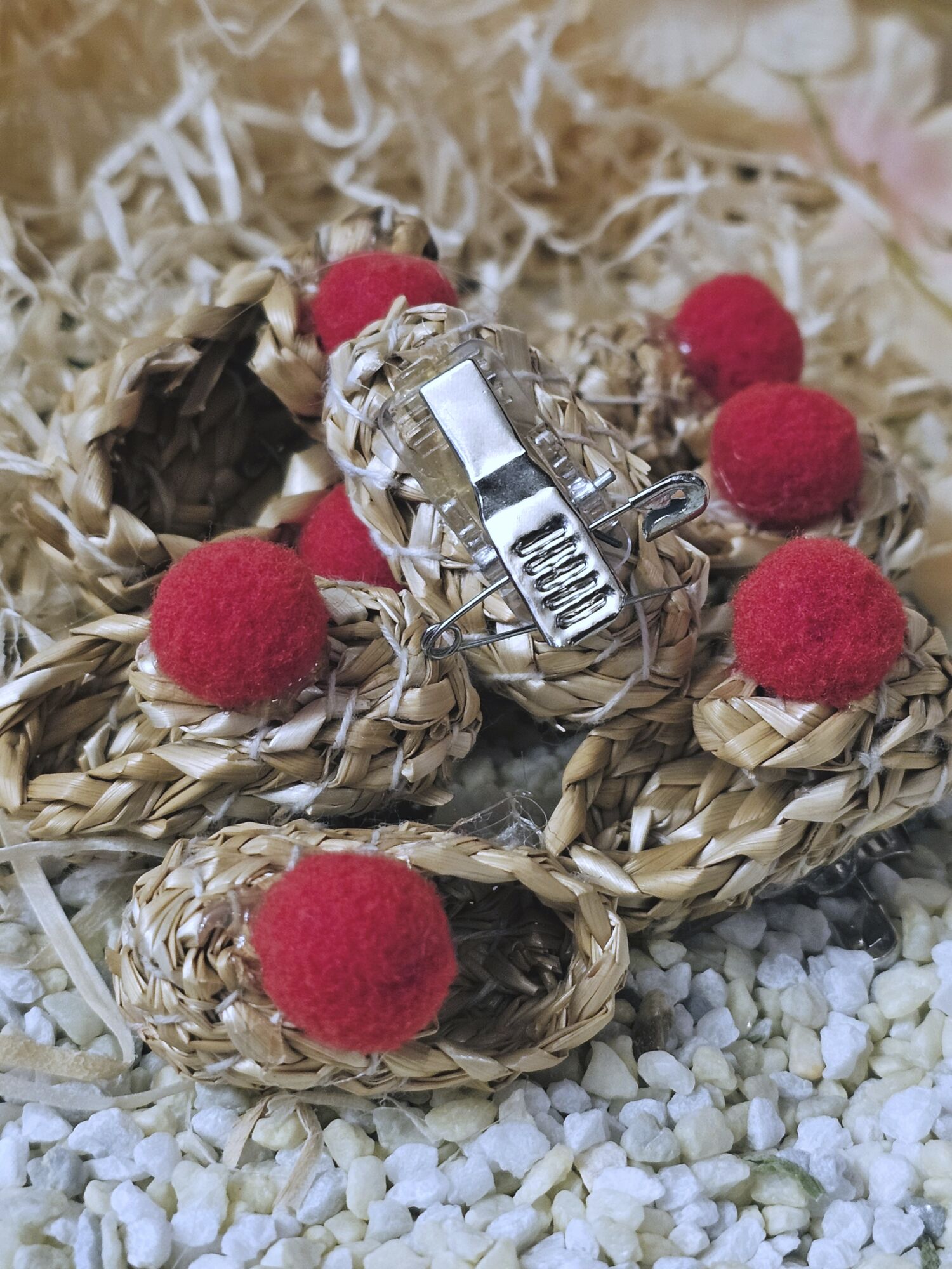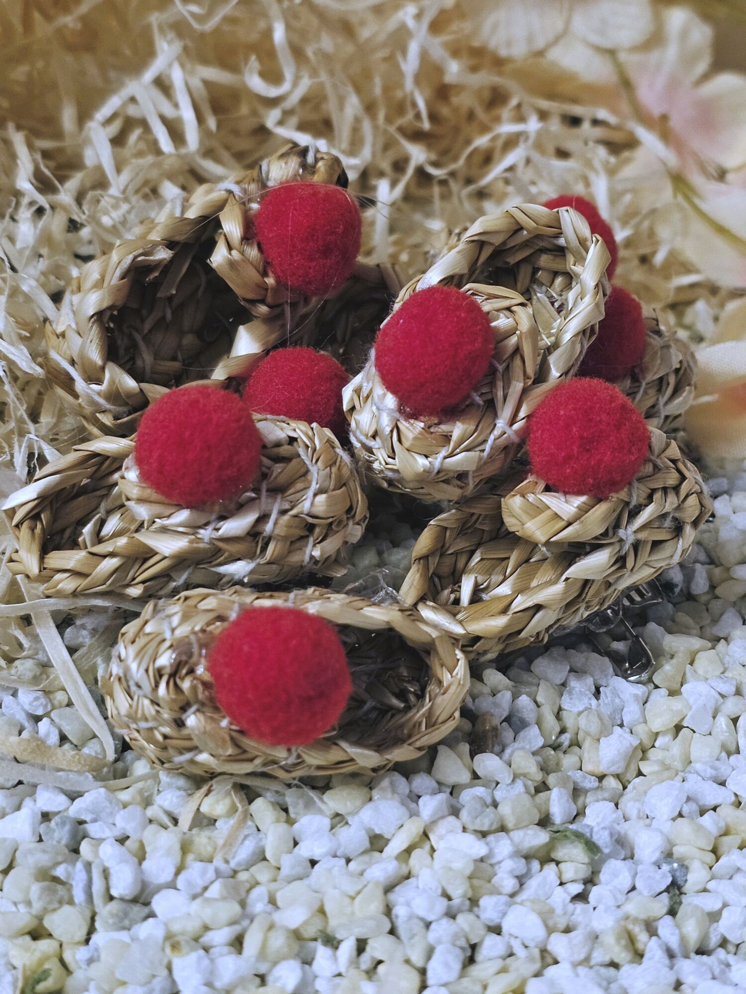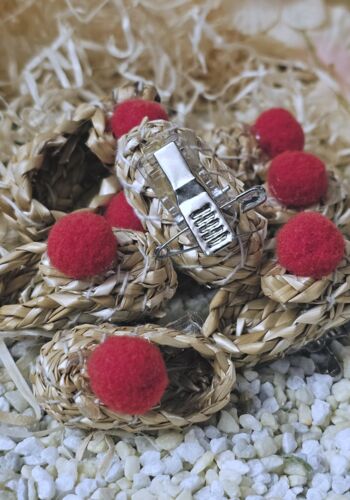 Hier bieten wir euch herrliche Miniaturstrohschuhe aus Stroh rotem Bollenhut
