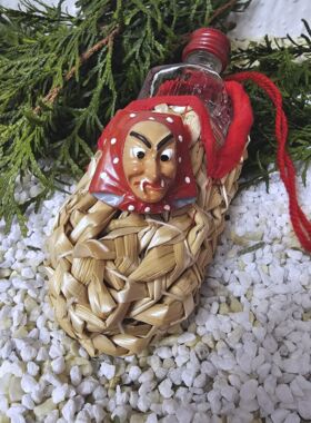Strohschuh mit Miniaturmäskle und Schnäpsle