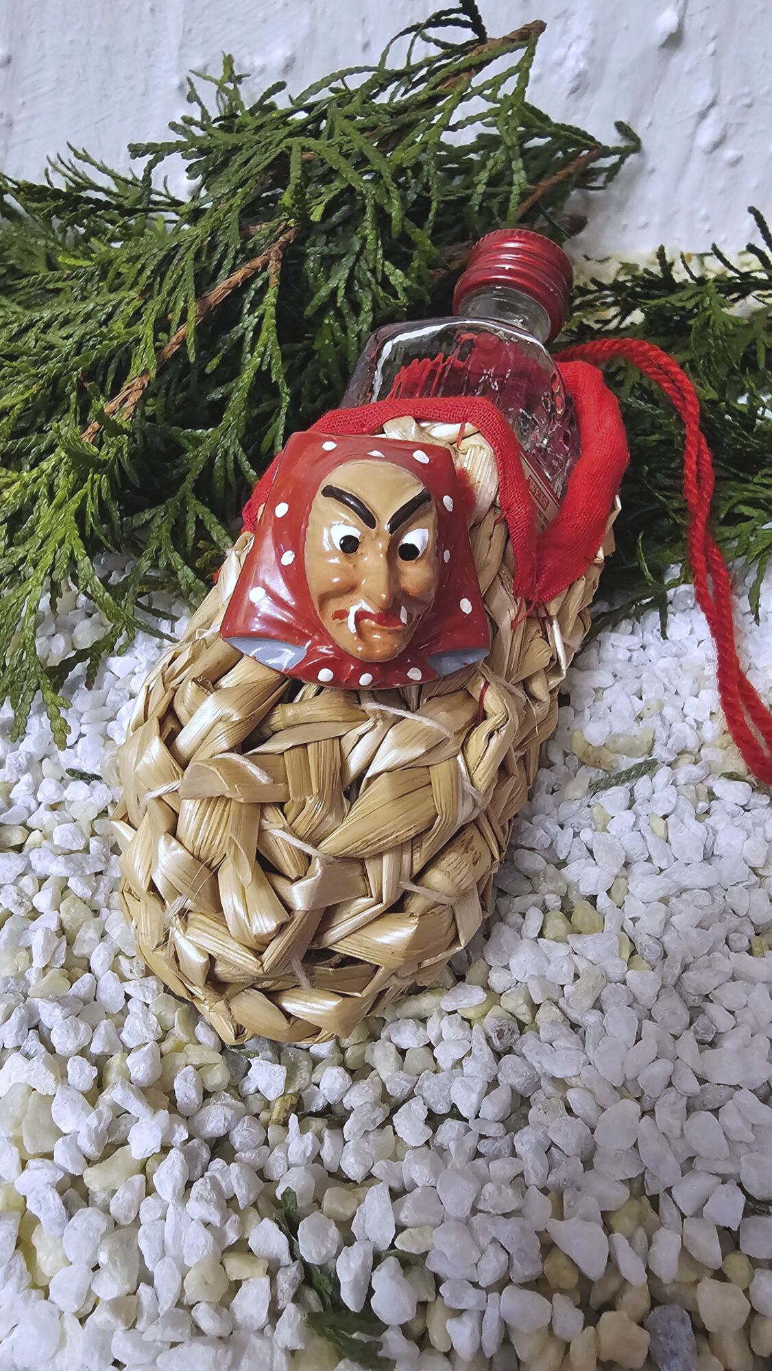 Handgefertigter kleiner Strohschuh rot umrandet und mit feinstem Schwarzwälder Schnäpsle