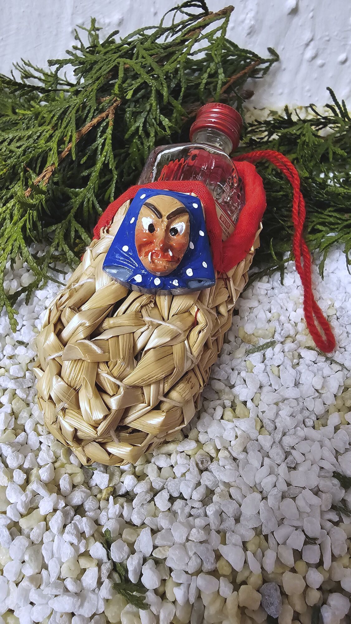 Handgefertigter kleiner Strohschuh rot umrandet und mit feinstem Schwarzwälder Schnäpsle