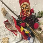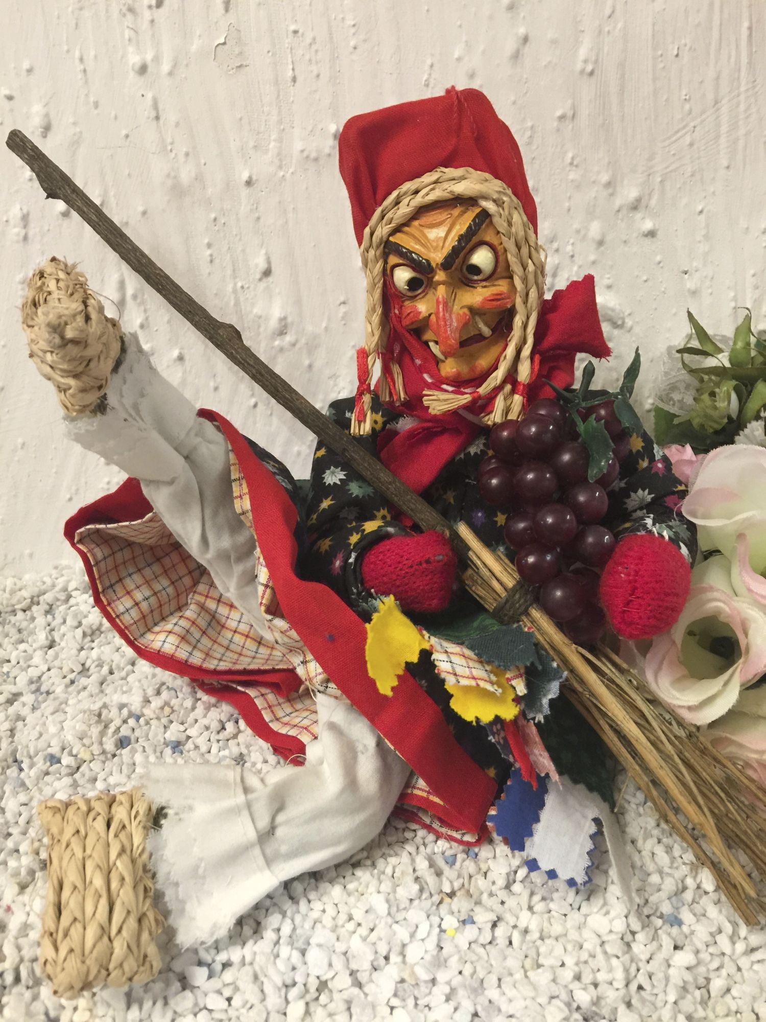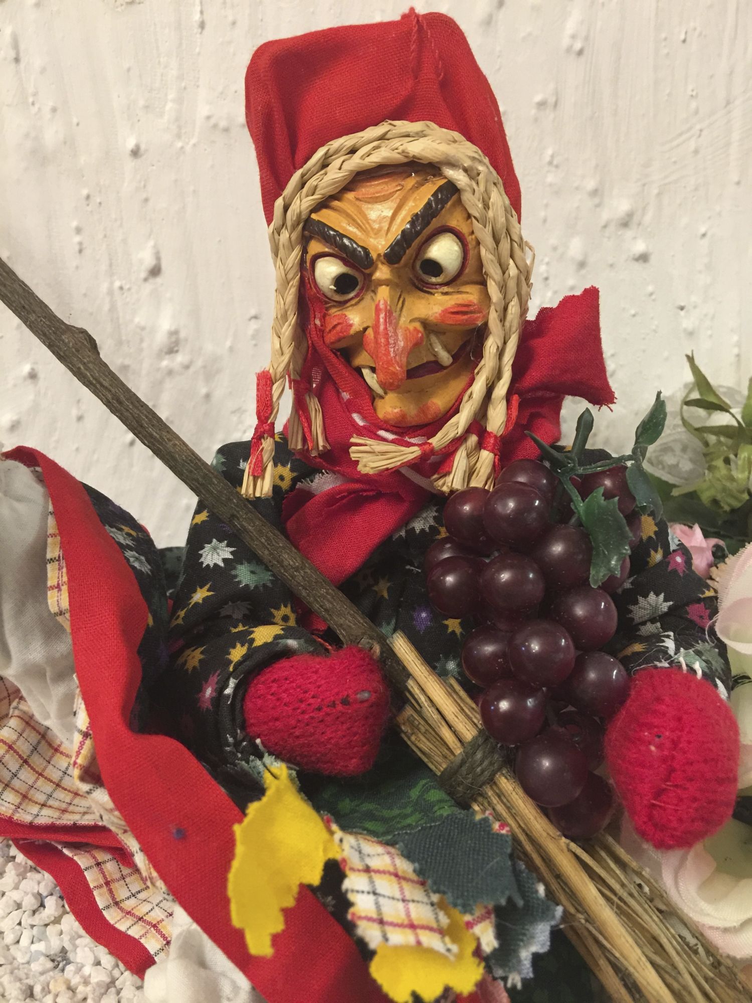 mit handbemalter Hexenmaske und fetzigem Hexenbesen