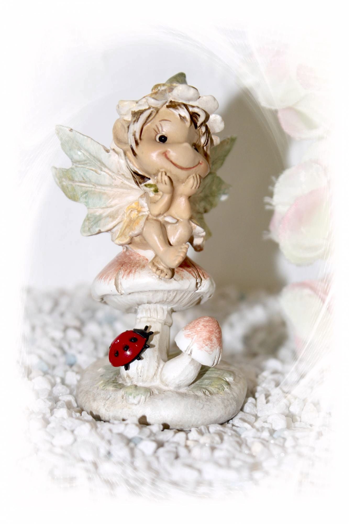 138864 Glückselfe "Tanny" auf Pilz mit Glückskäfer