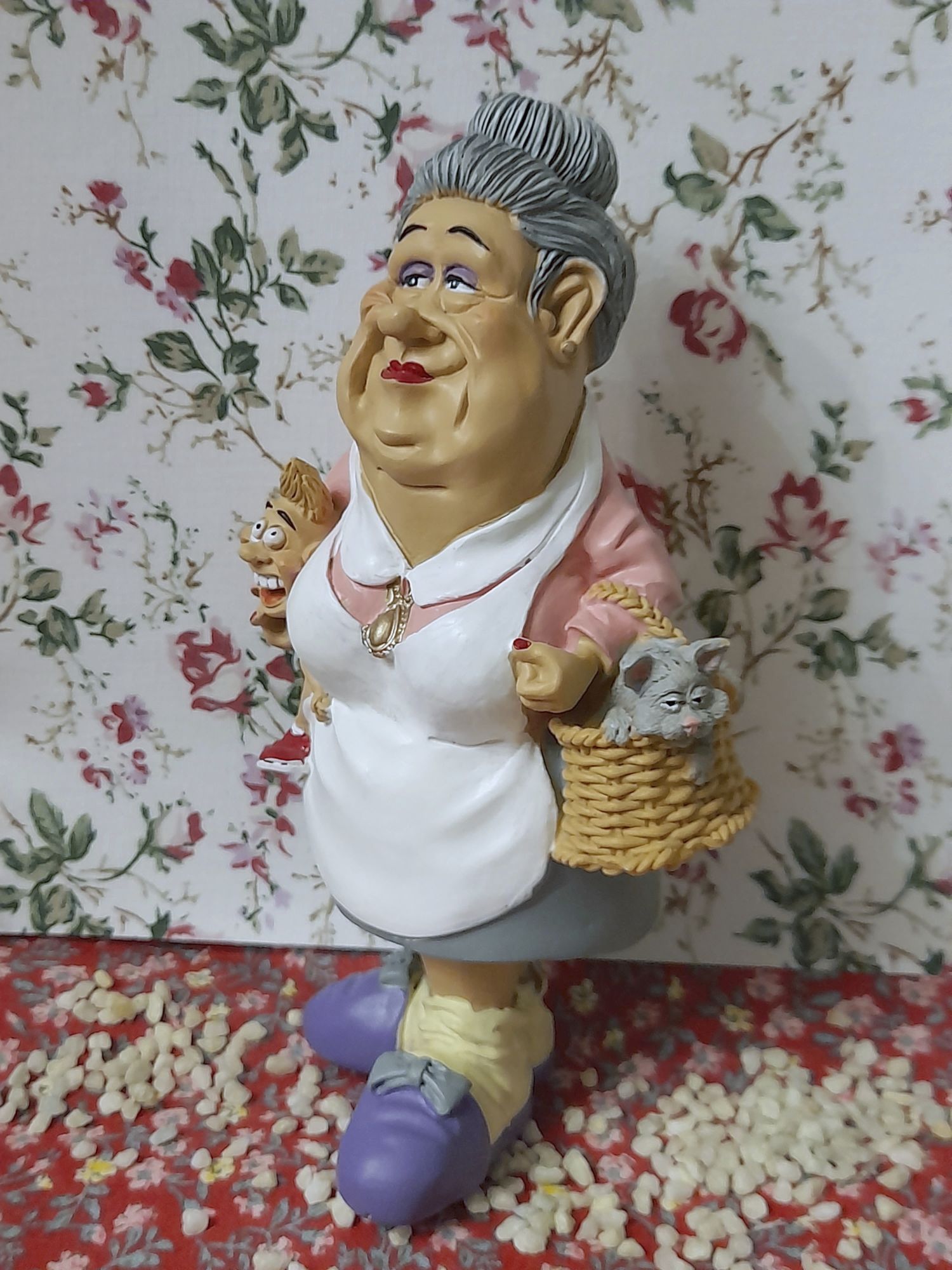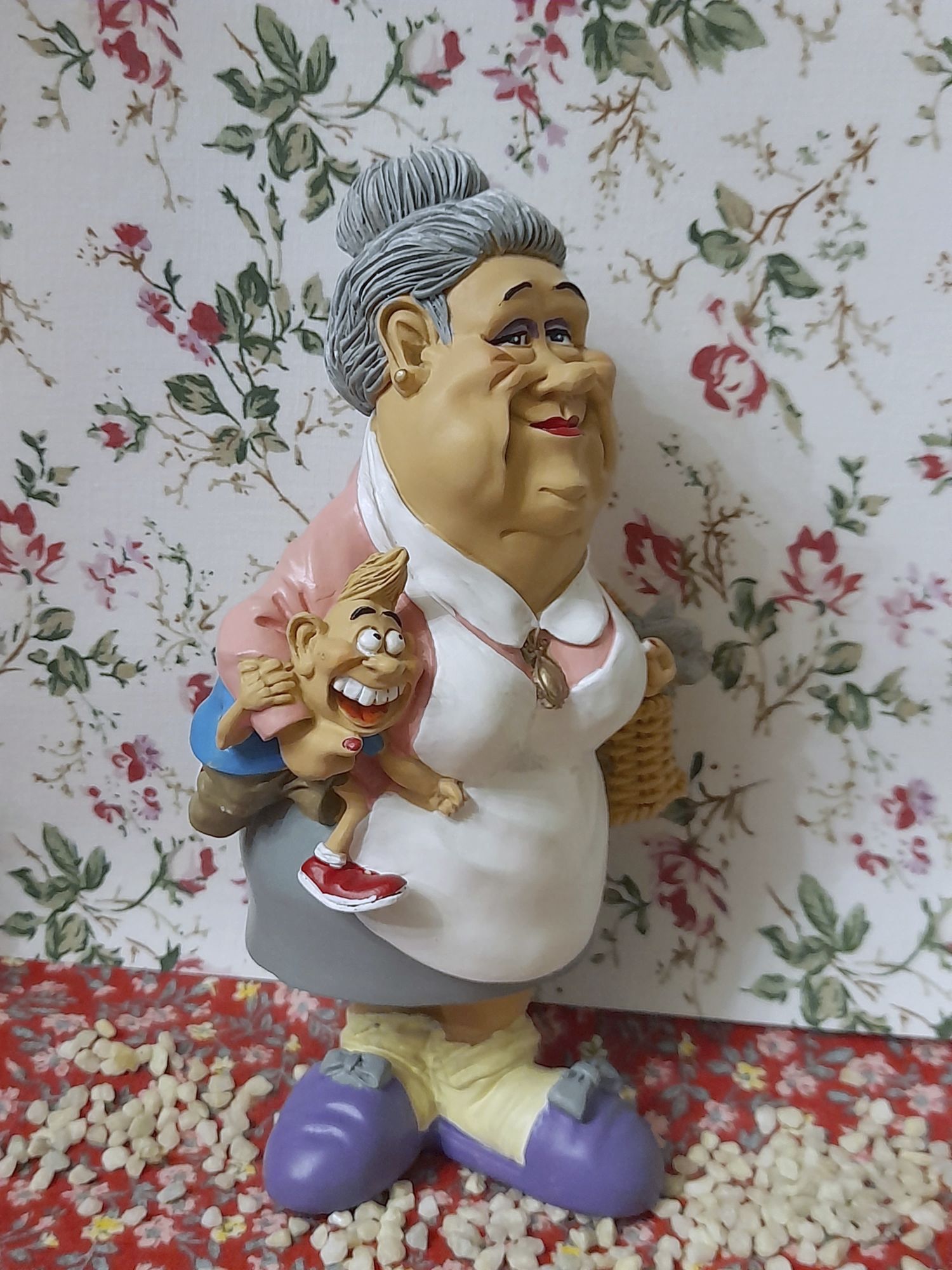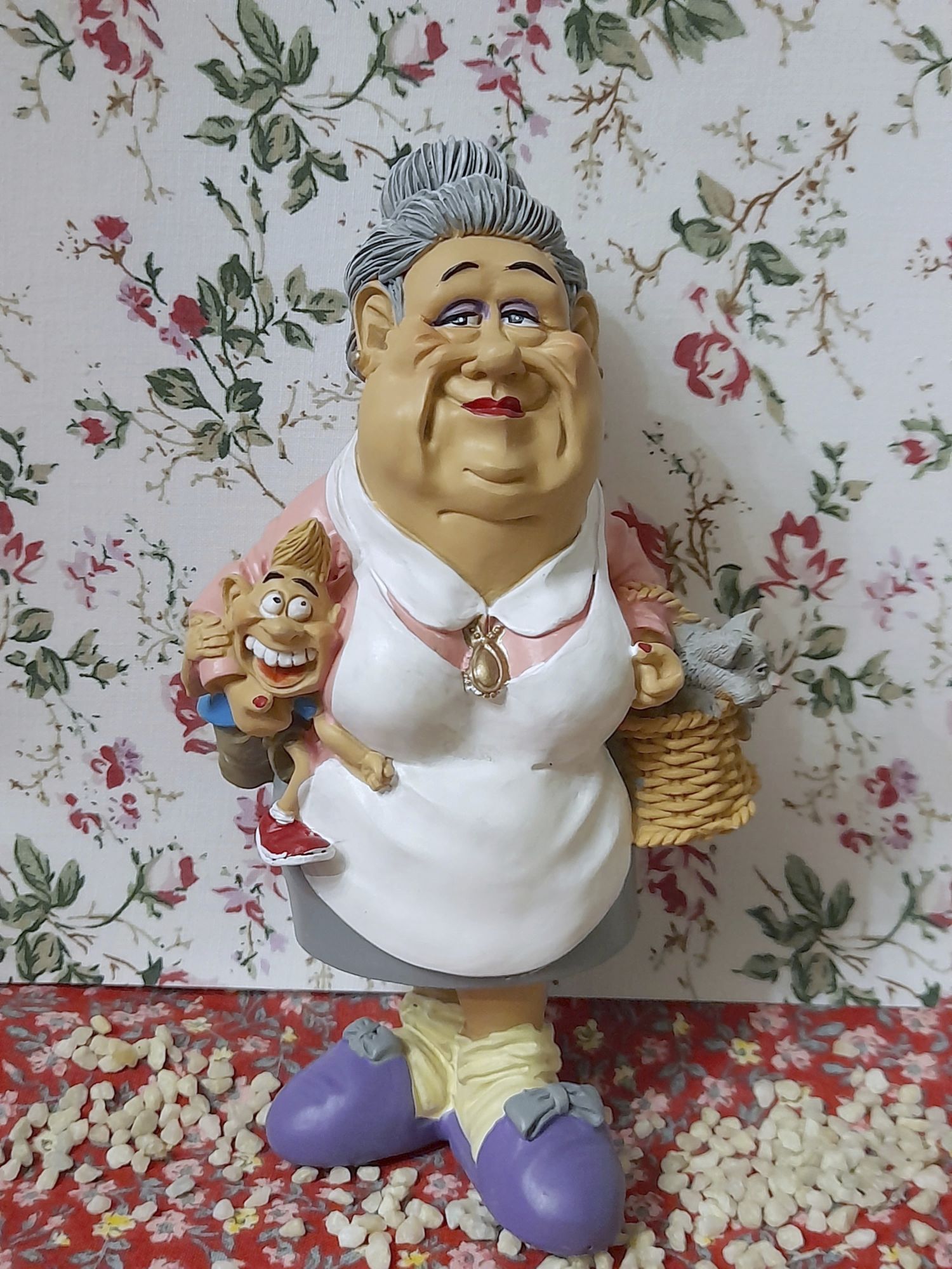 Die geplagte Oma mit Enkel und Haustier.