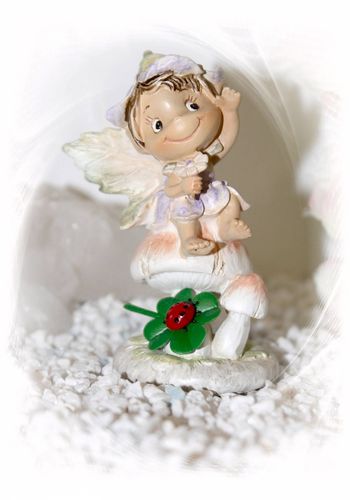Glückselfe "Ralffi" auf Pilz mit Glückskäfer