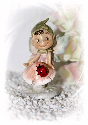 Glückselfe "Tammy" auf Pilz mit Glückskäfer