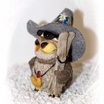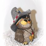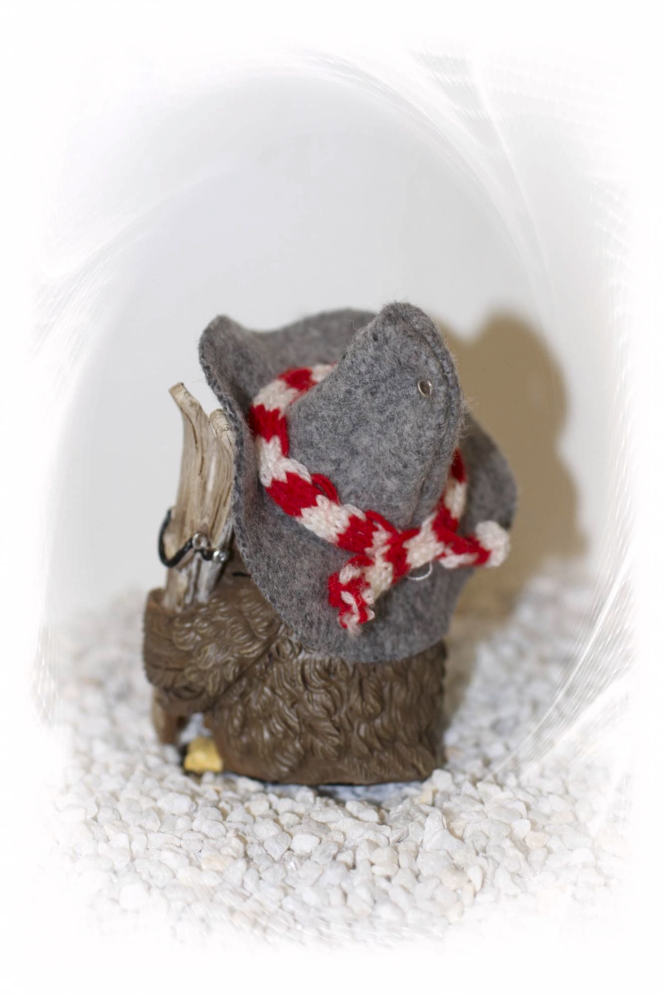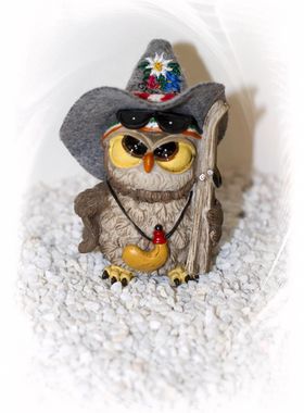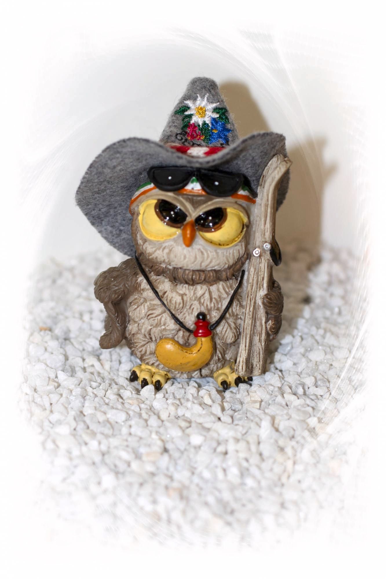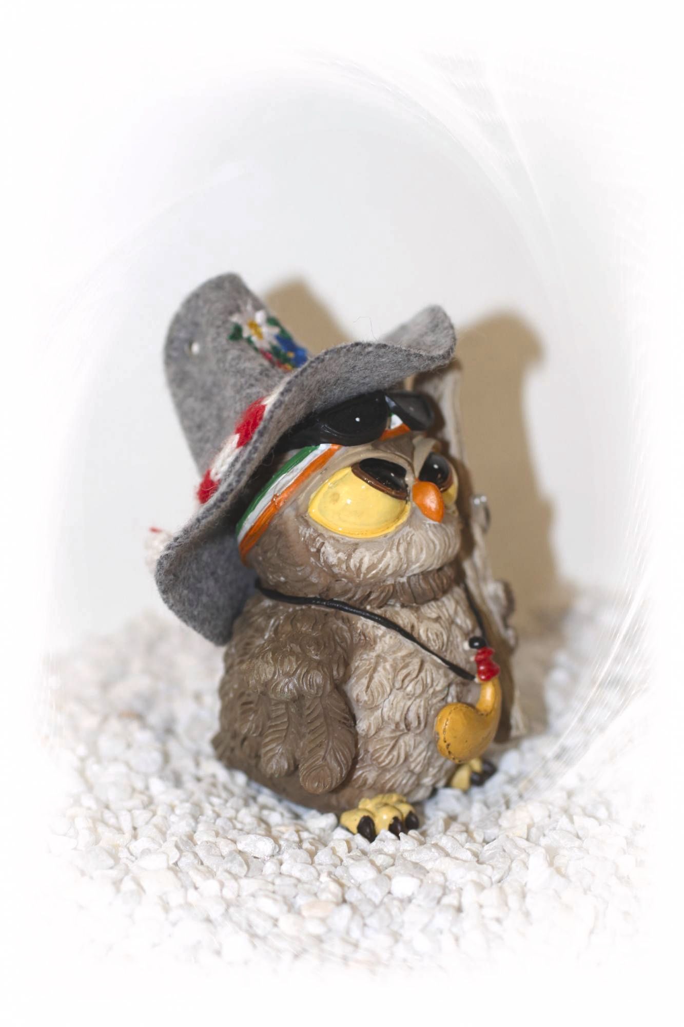 Diese Eule ist mit einem echten handgefertigten und besticktem Filzhut versehen.