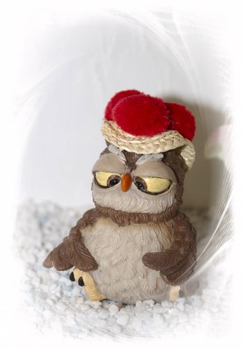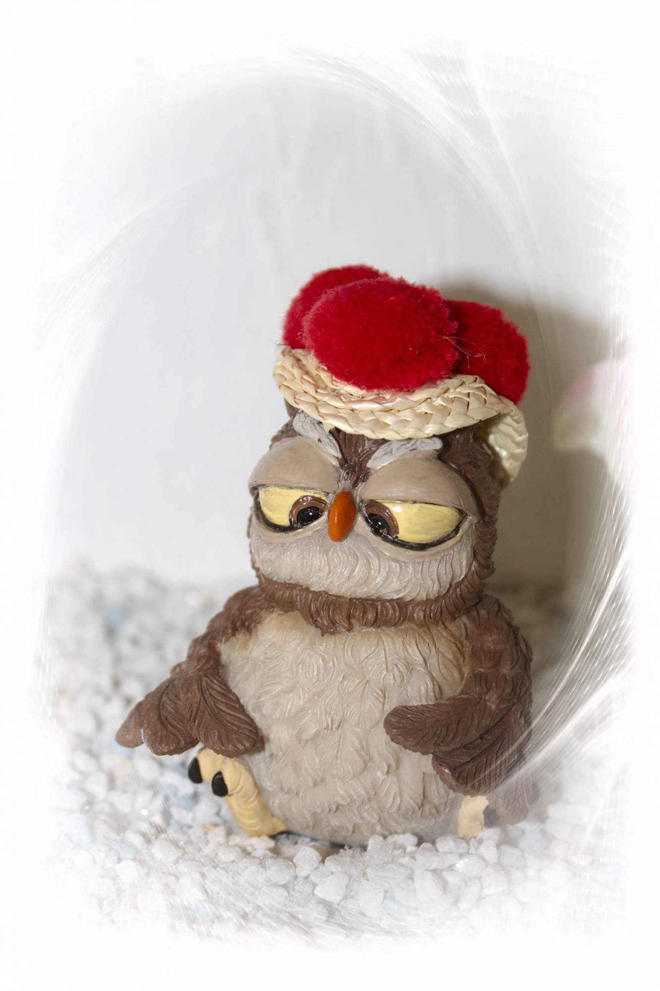 Eine niedliche Eule mit einem Handgefertigten Schwarzwälder Bollenhut.