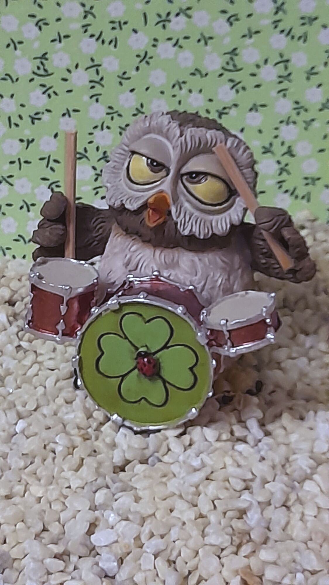 Eule "Peter" am Schlagzeug. Eine traumhafte Eulenfigur.