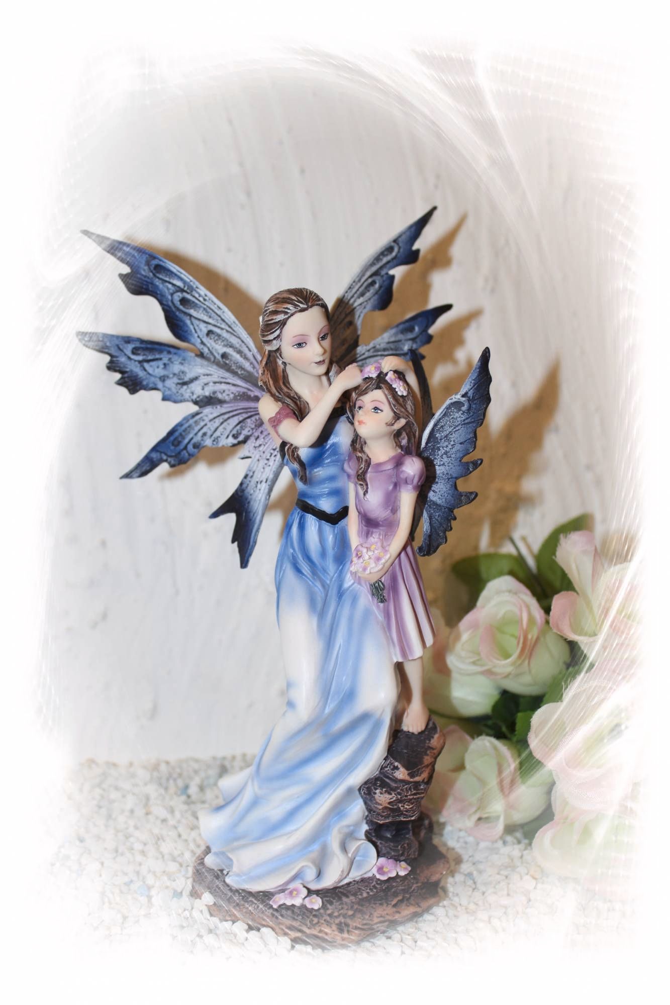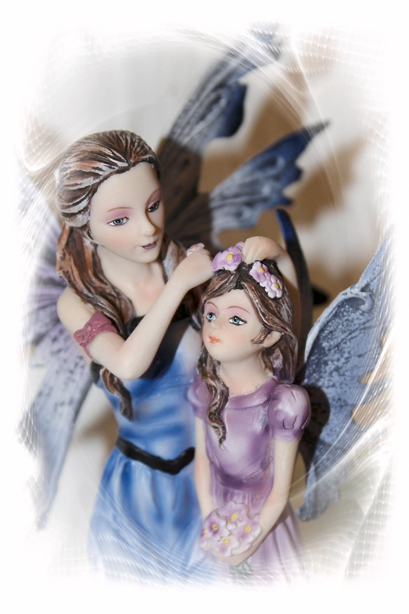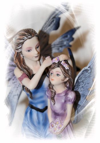 Hier zeigen wir Ihnen eine herrliche Glückselfe mit Mutter und Tochter aus dem Fantasieland der Les Alpes Collektion.