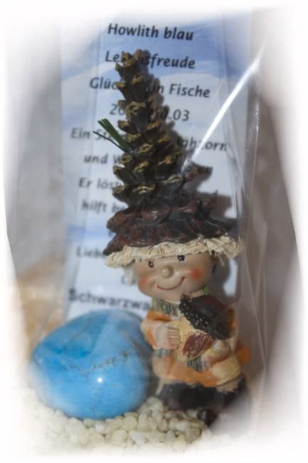 Die Wichtele werden als Geschenk in einer Cellotüte, mit Dekosteinchen als Geschenk verpackt geliefert.