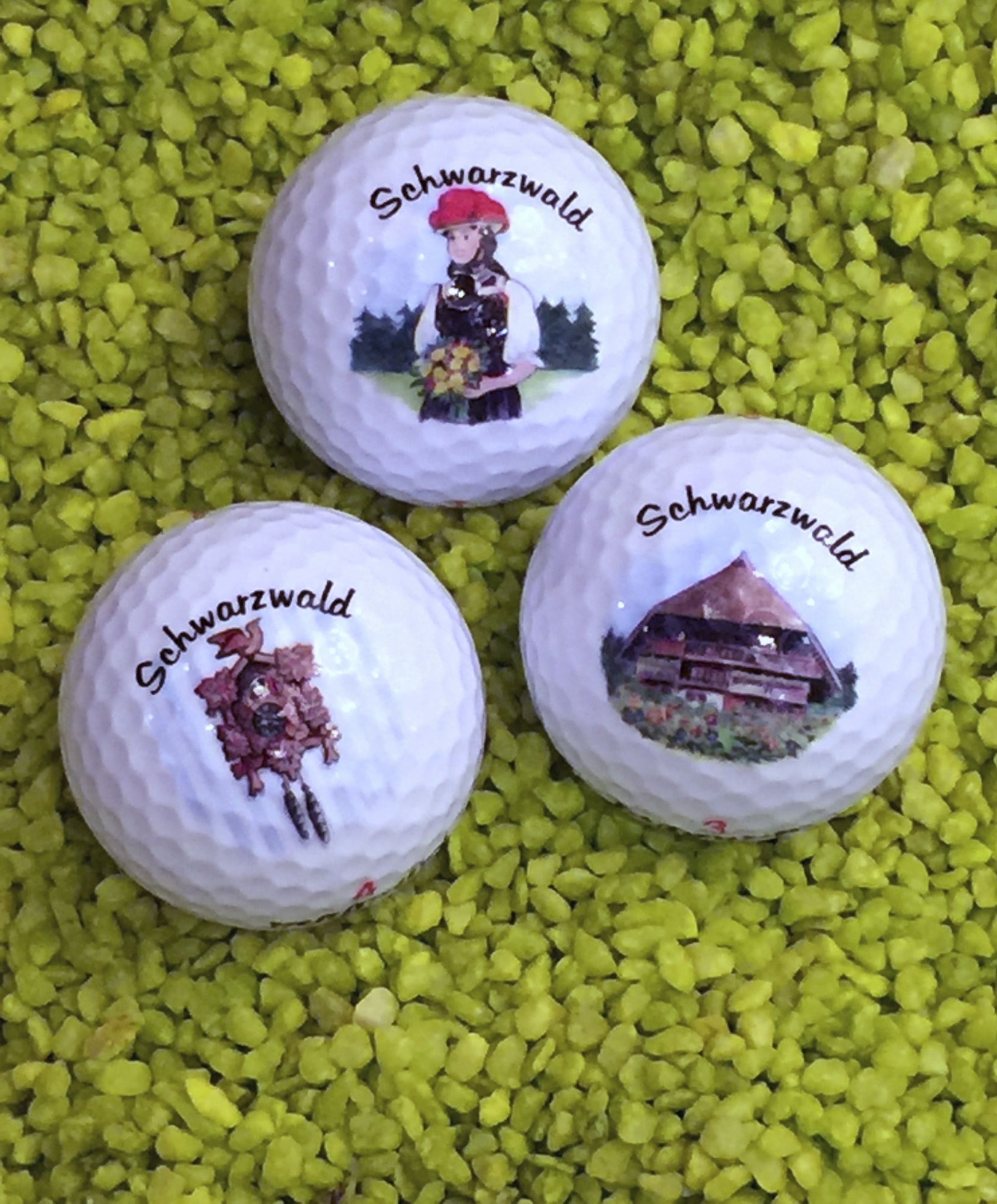 Golfbälle mit Schwarzwaldmotiven