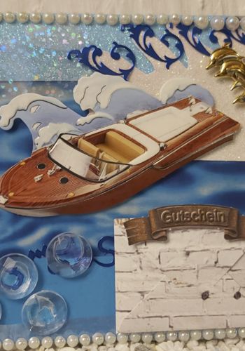 Material: Karton, Papier, Perlen, Schmucksteinchen