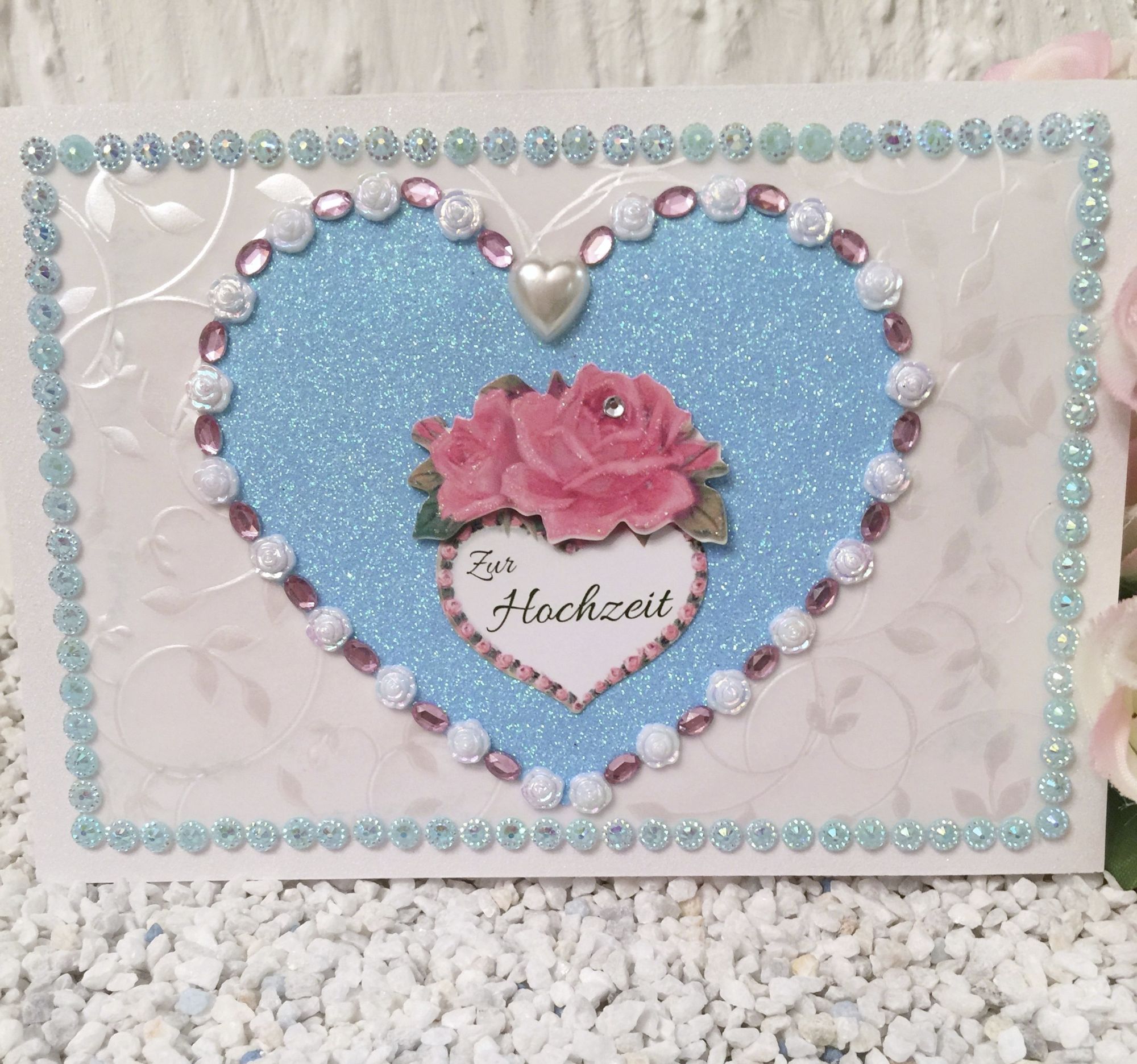 Hier zeigen wir Ihnen edle handgefertigte Designerkarten mit Motiv und edlen Schmuckperlen