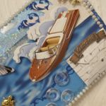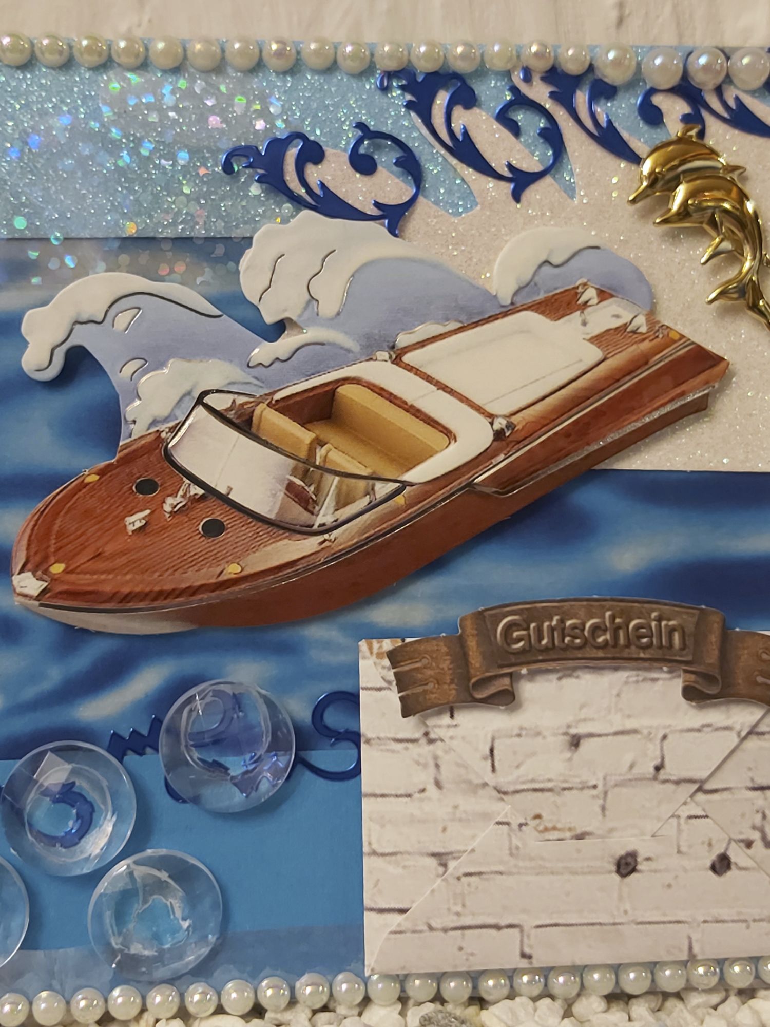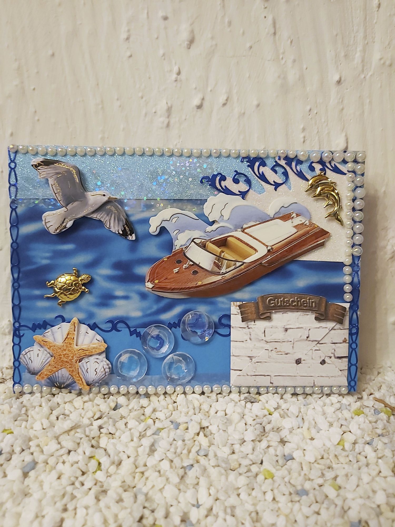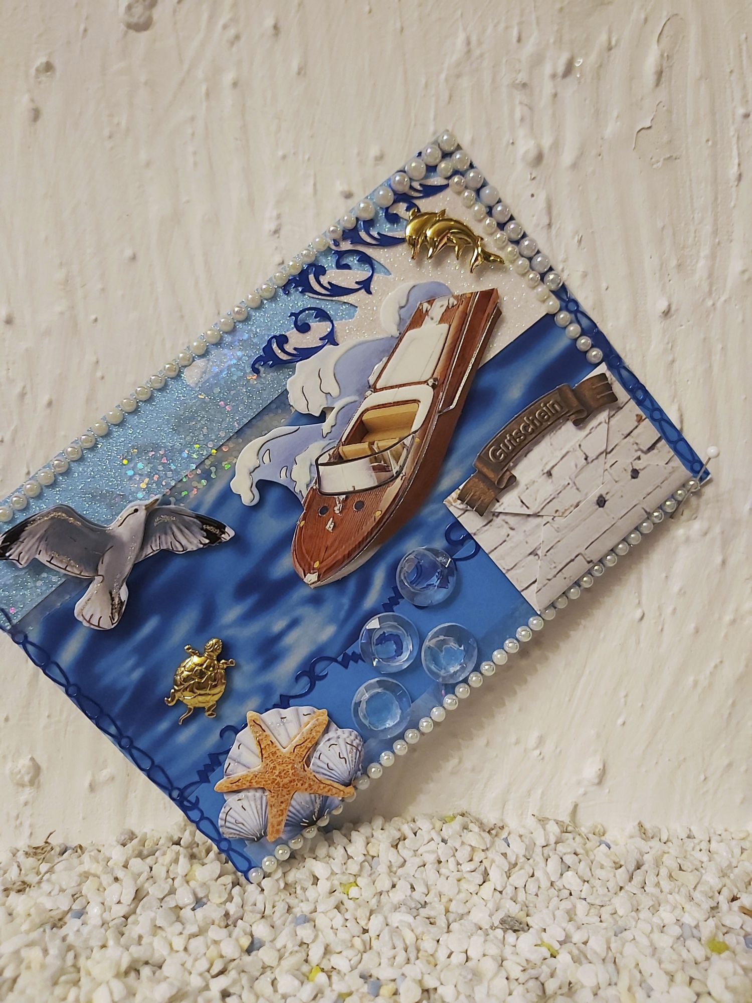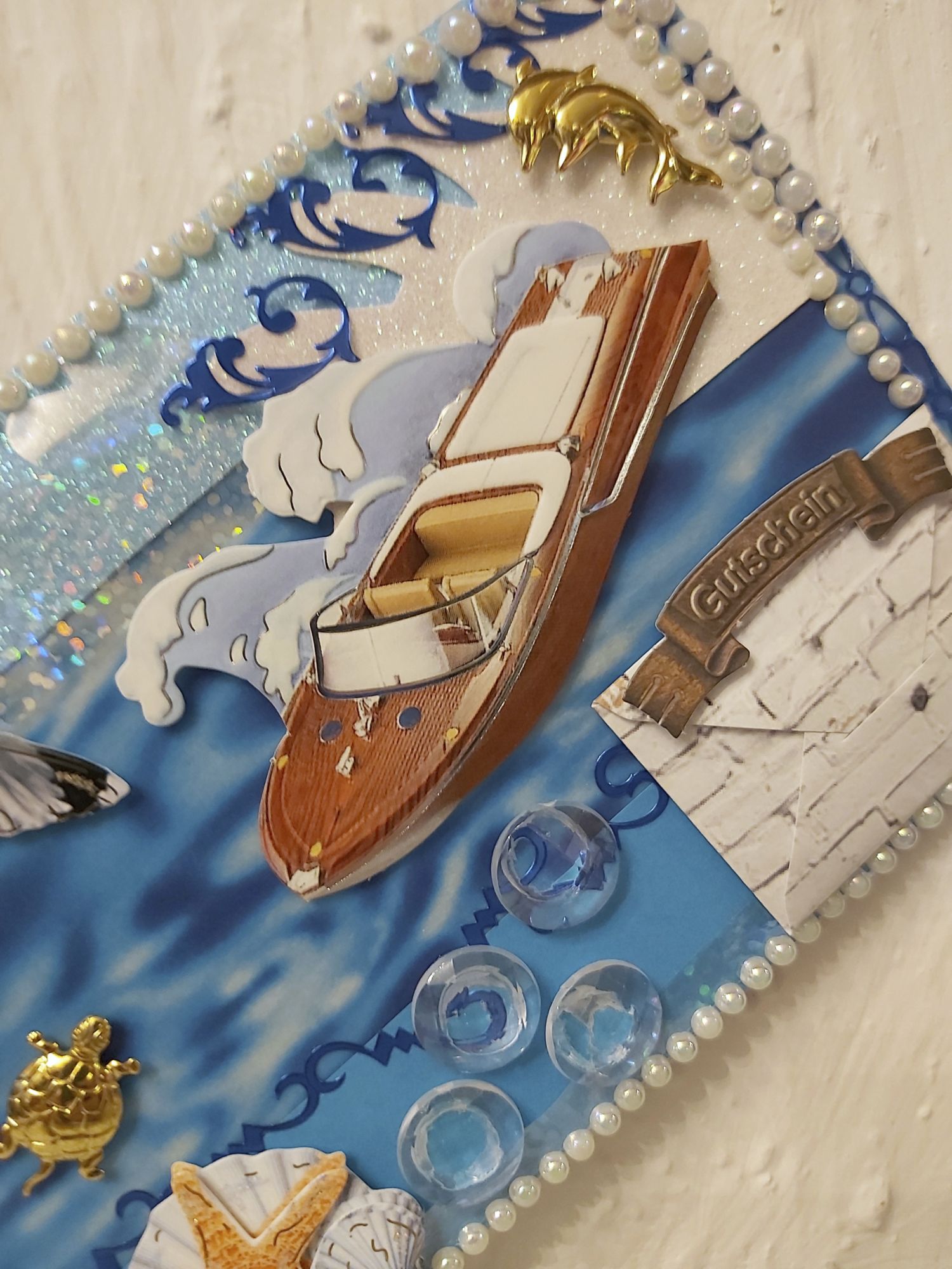 Material: Karton, Papier, Perlen, Schmucksteinchen