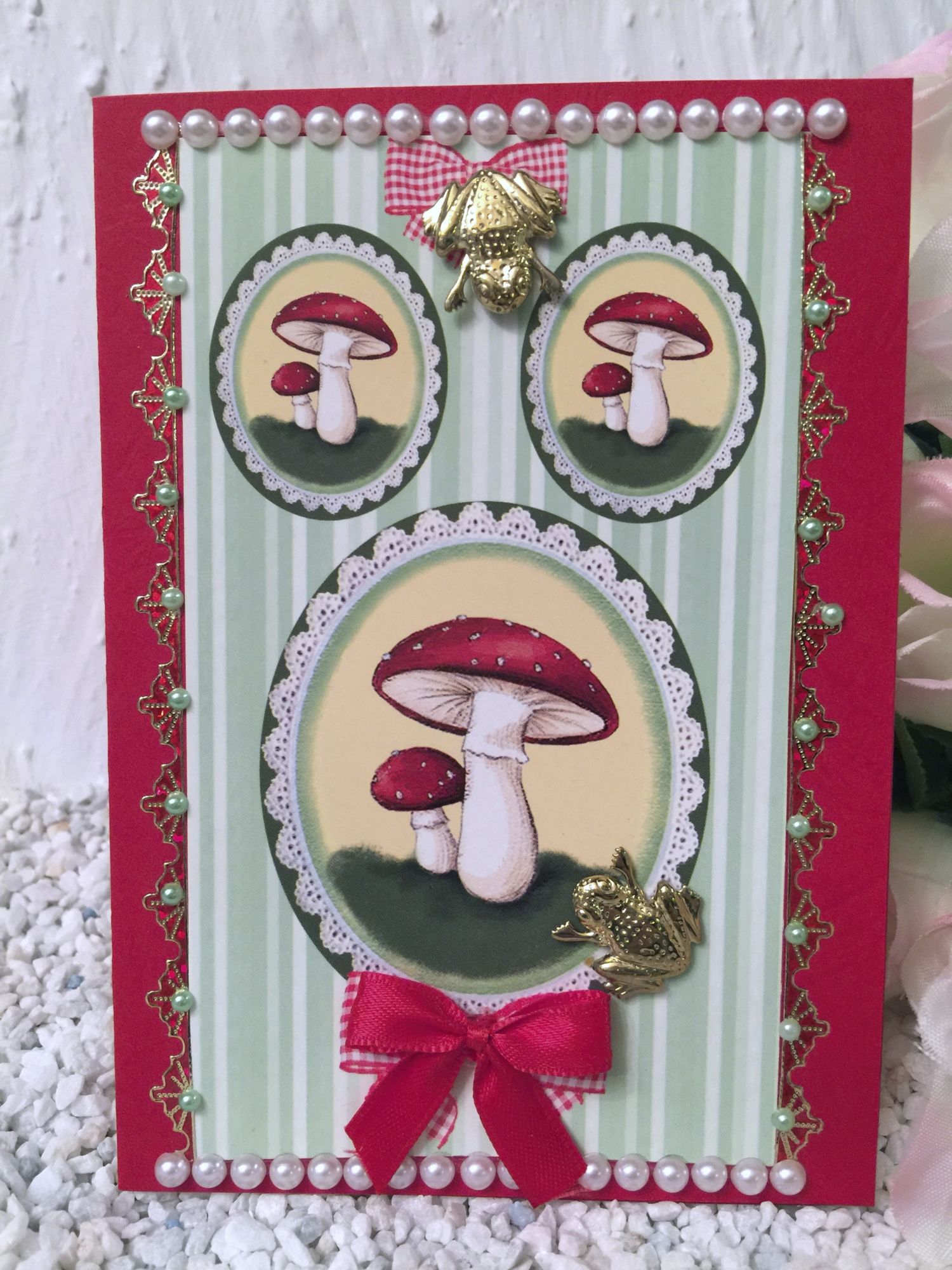 Designerkarte mit Glückspilzen und Glücksfröschle