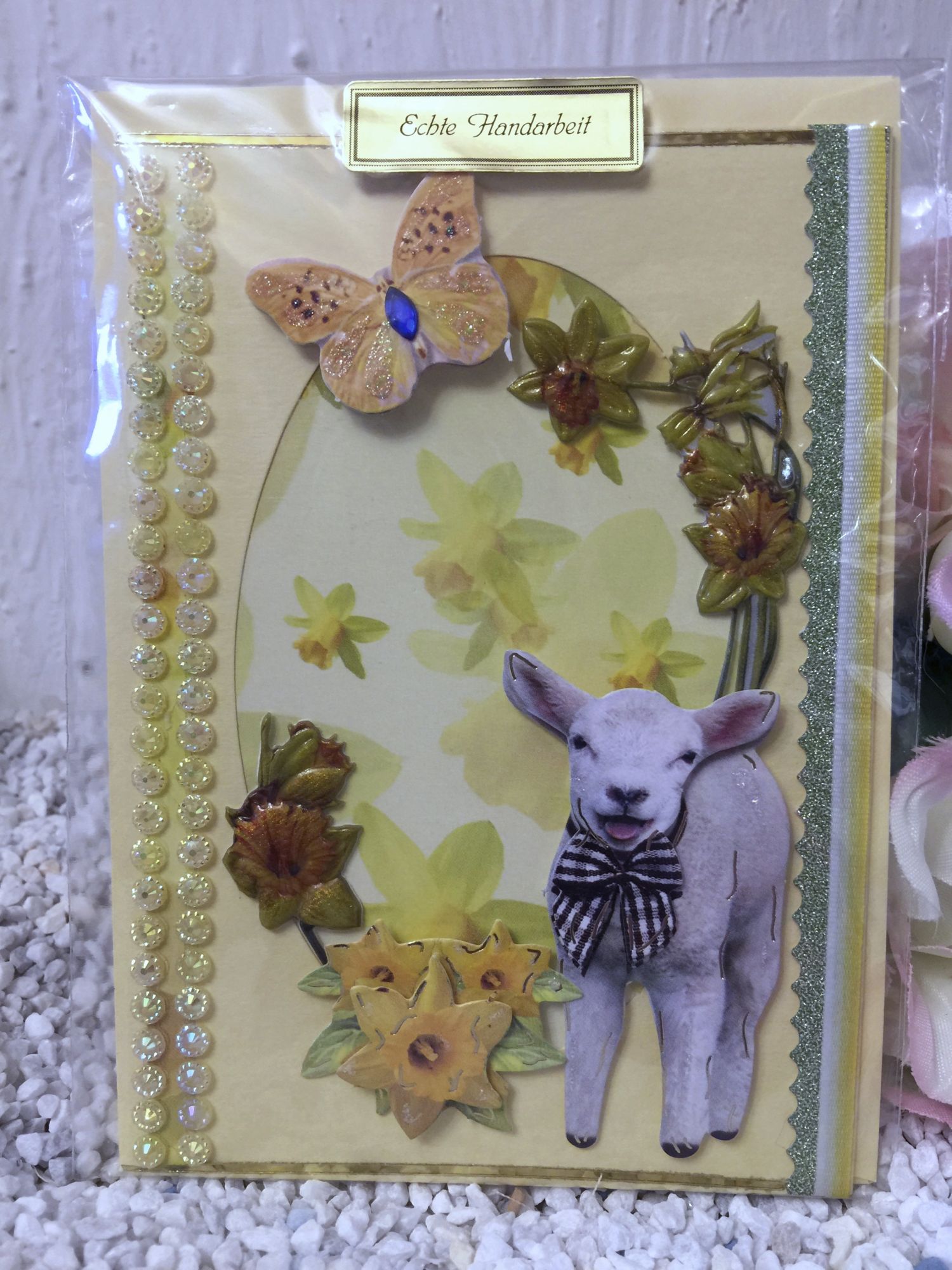 Lämmle mit Blumen und Schmetterling