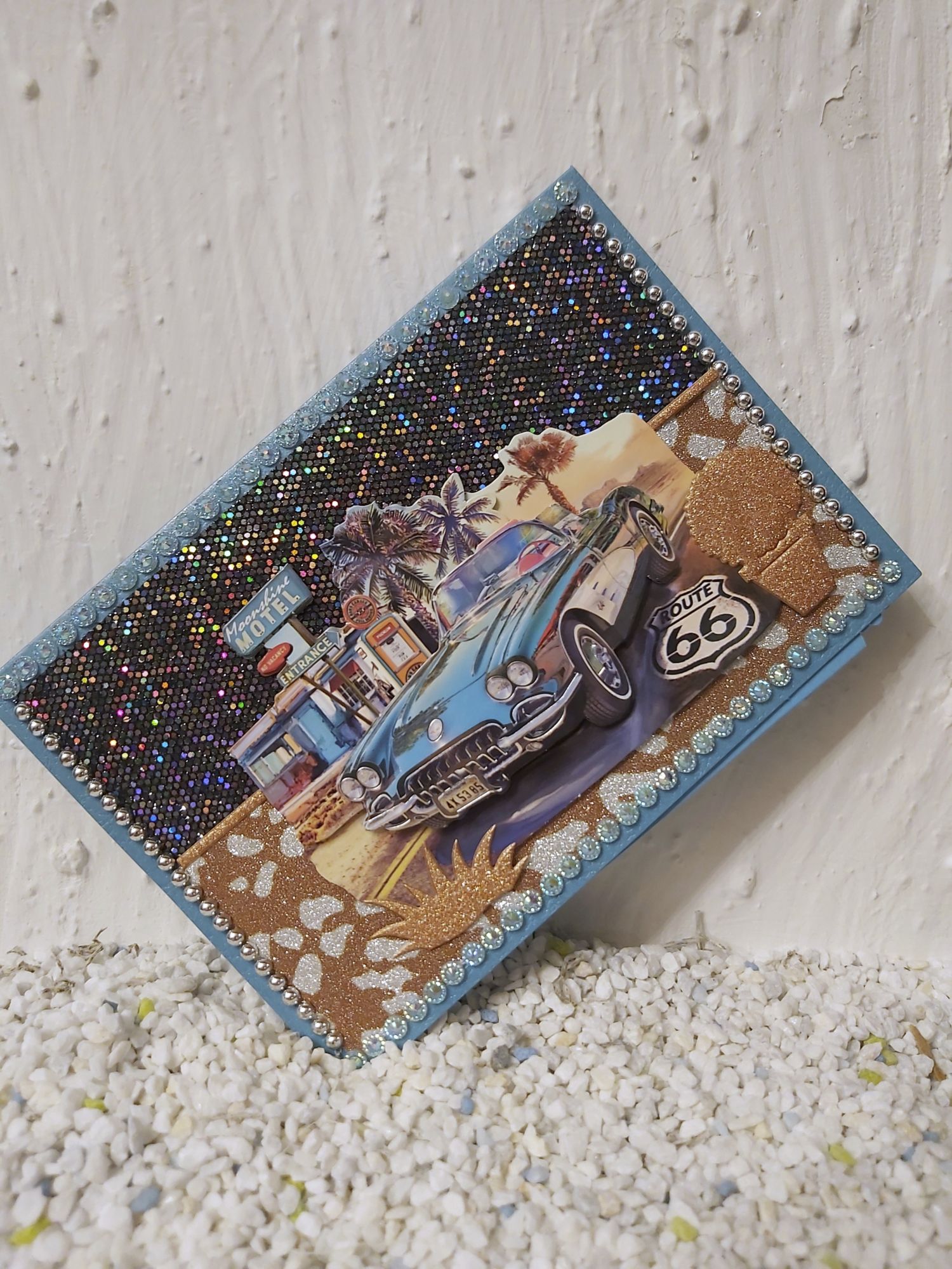 Material: Karton, Papier, Perlen, Schmucksteinchen