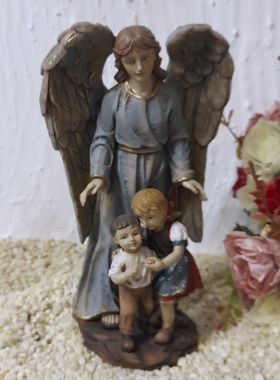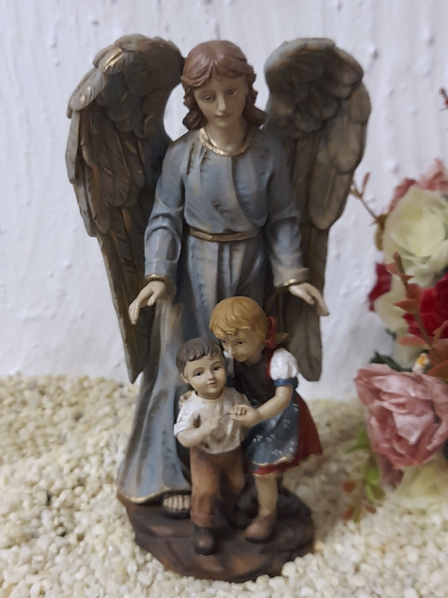 Ein wunderschöner Engel mit Kindern in 3 D. Handgegossen und liebevoll handbemalt.