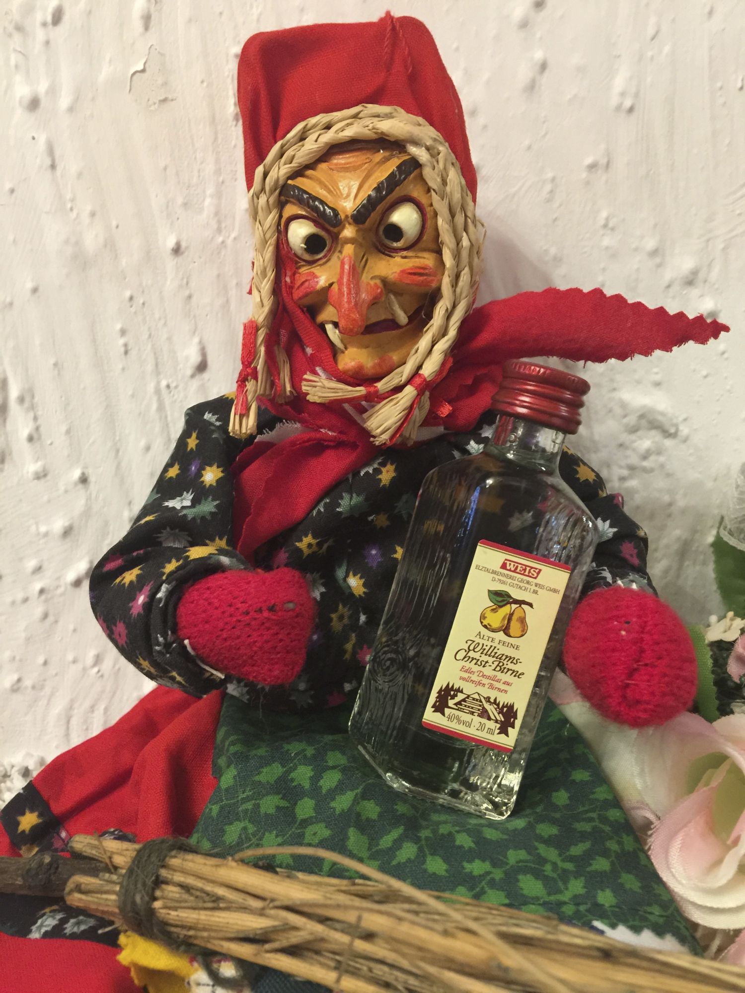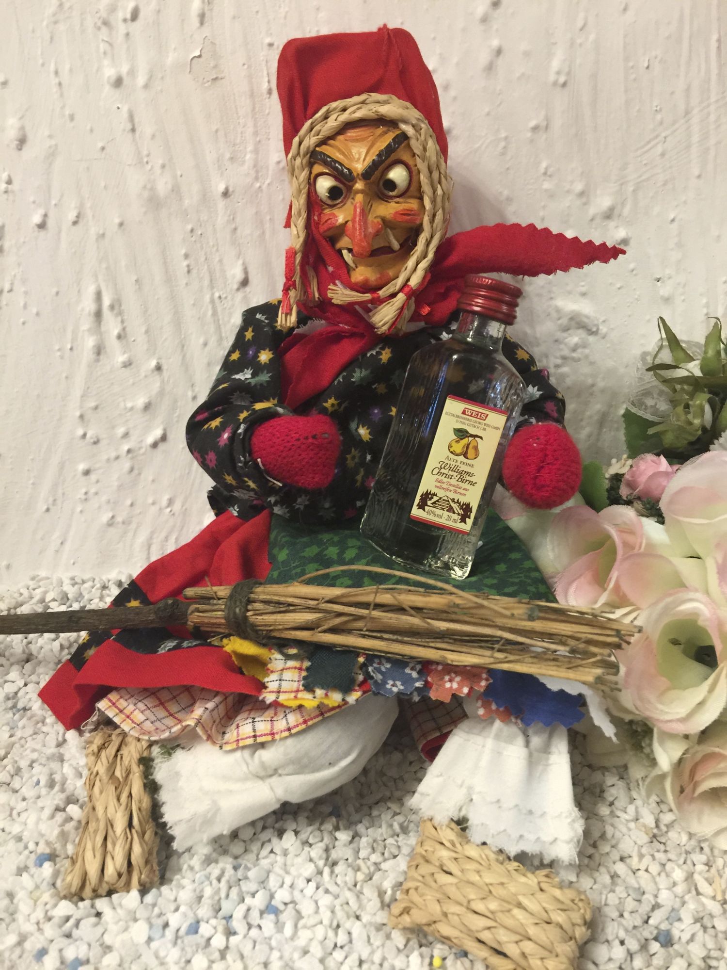 Die freche Hexe hat ein kleines rustikales Schnäpsle dabei.