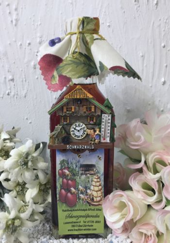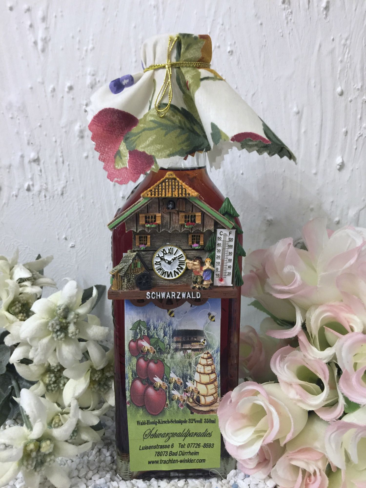 Abgefüllt in der schönen traditionellen Schwarzwaldflasche mit Schwarzwaldmotiven.