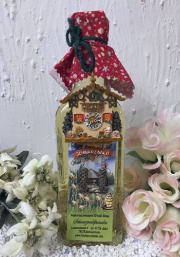 Für uns abgefüllt in der schönen Schwarzwaldflasche mit SchwarzwaldmotivenDas Honigfläschle wird von uns geschmückt mit einem Tüchlein und schönem Schwarzwälder Figurenmotiv.