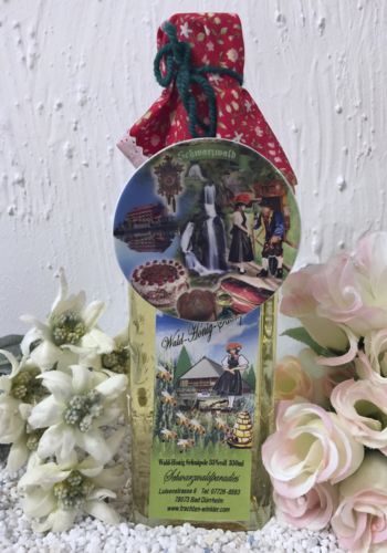Für uns abgefüllt in der schönen Schwarzwaldflasche mit SchwarzwaldmotivenDas Honigfläschle wird von uns geschmückt mit einem Tüchlein und schönem Schwarzwälder Figurenmotiv.