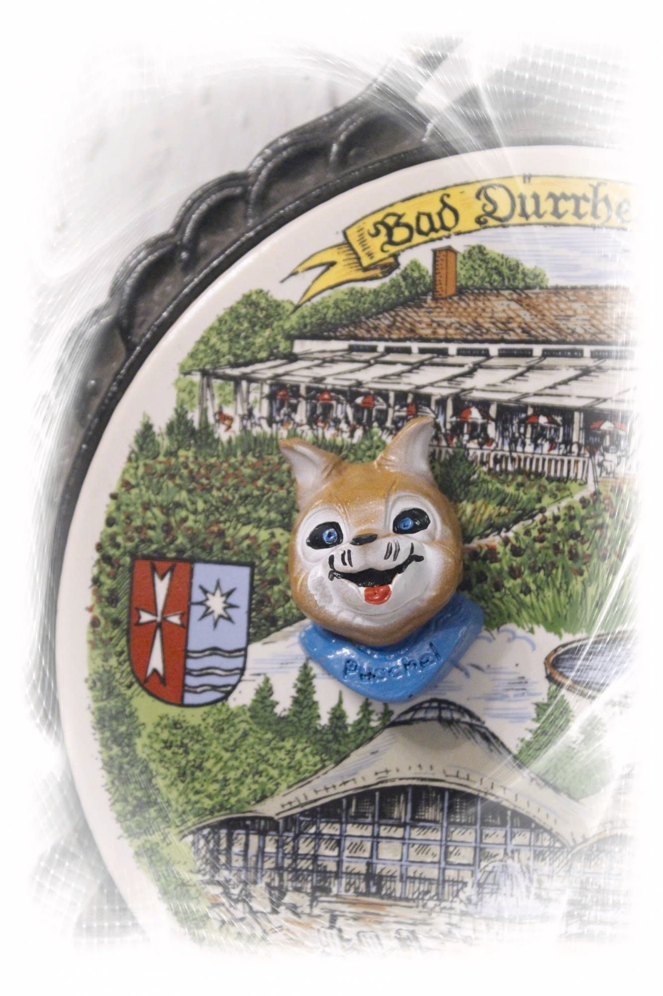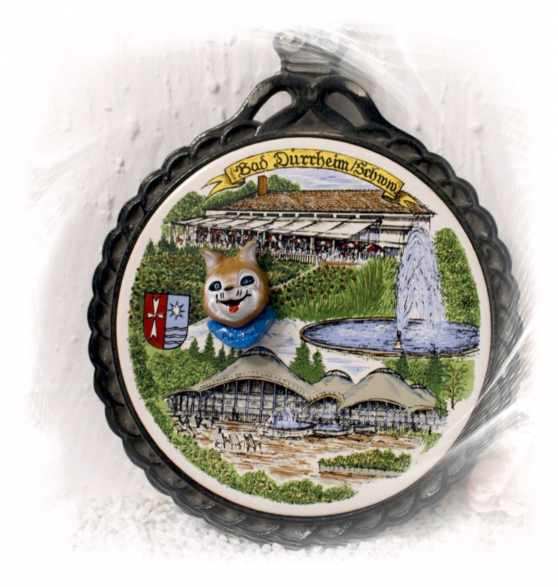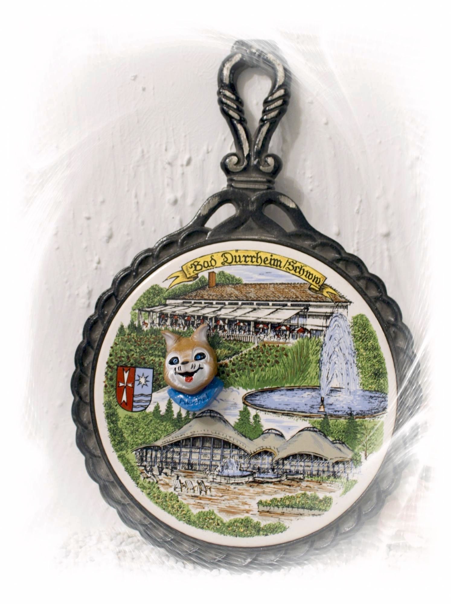 Gußkachel mit Porzellan Motiv "Bad Dürheim" mit Eichhörnle