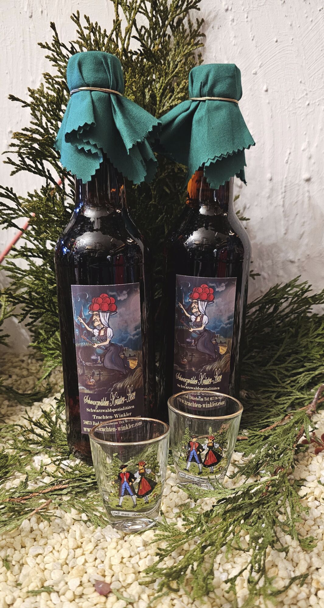HL1000 Schwarzwälder Kräuterhexe mit 2 Stamper Trachtenpaar
