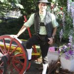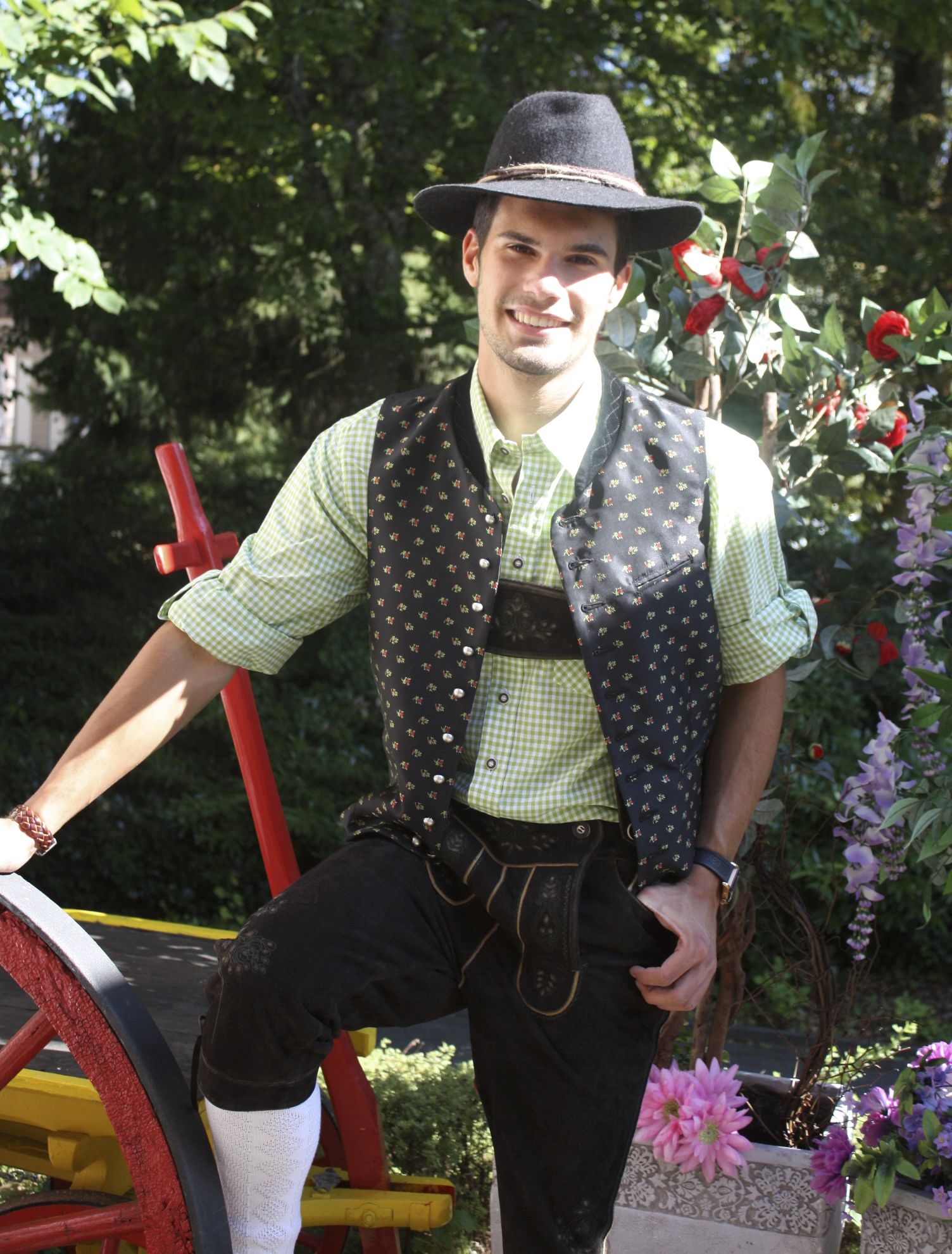 Aus feinstem Leder mit verstellbaren Steg-Träger und vorne auf dem Hosenlatz,sowie den schönen natur-grünlichern aufgeblasenen Stickereien an,Latz,Hosenbein und Träger