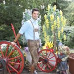 Die Lederhose hat Stegträger und sind abknöpfbar, so kann die schönen bestickten Hemden besoders gut sehen.