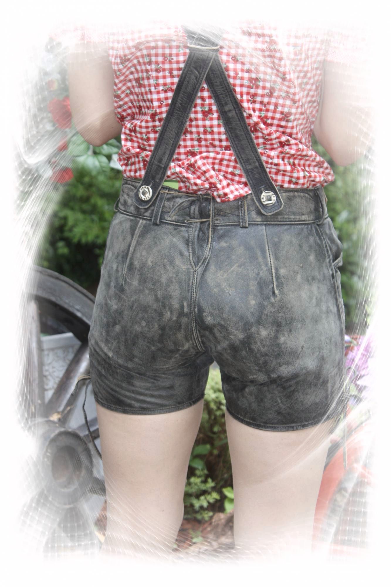 Damenlederhosen muß man persönlich anprobieren.