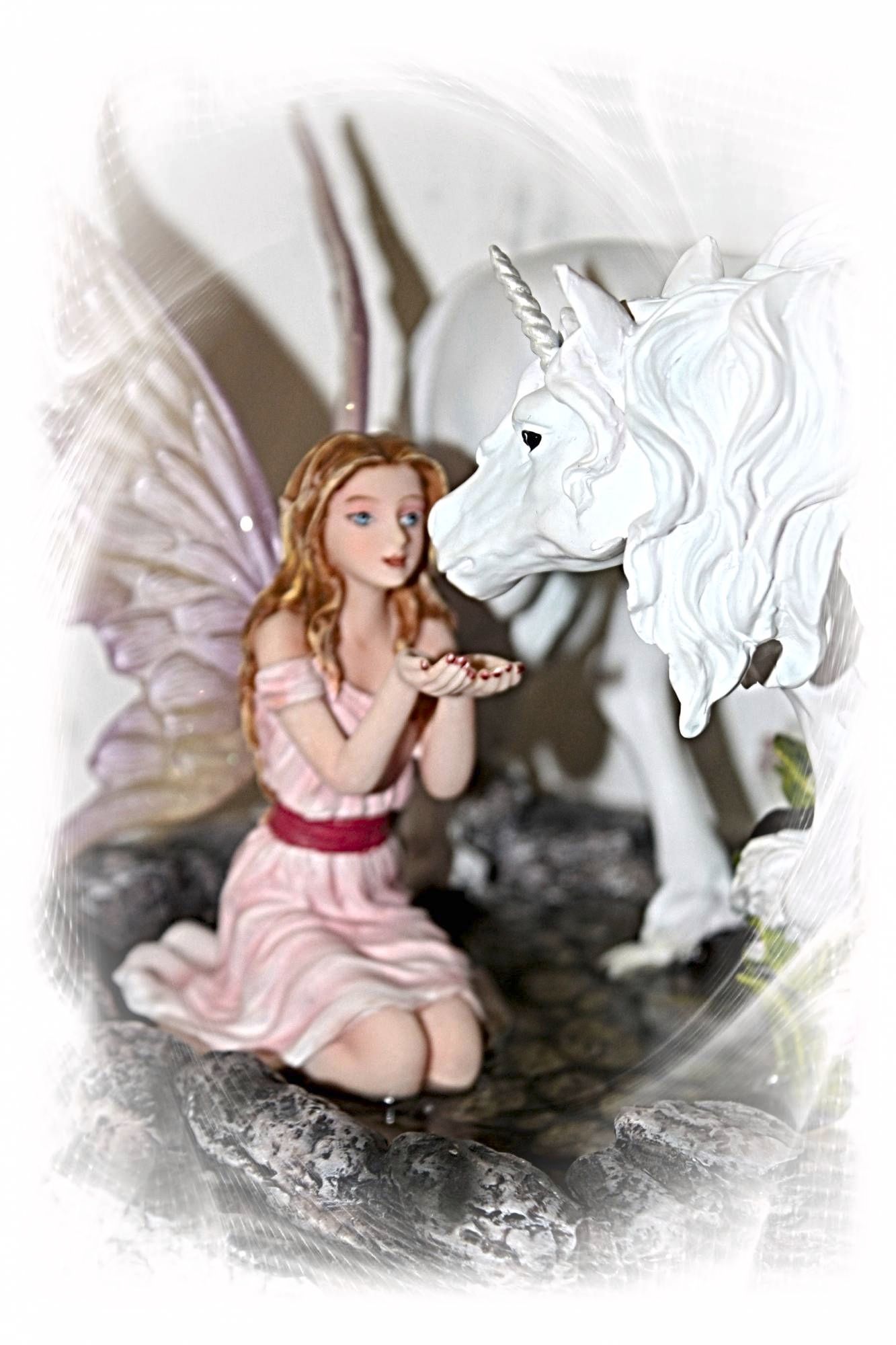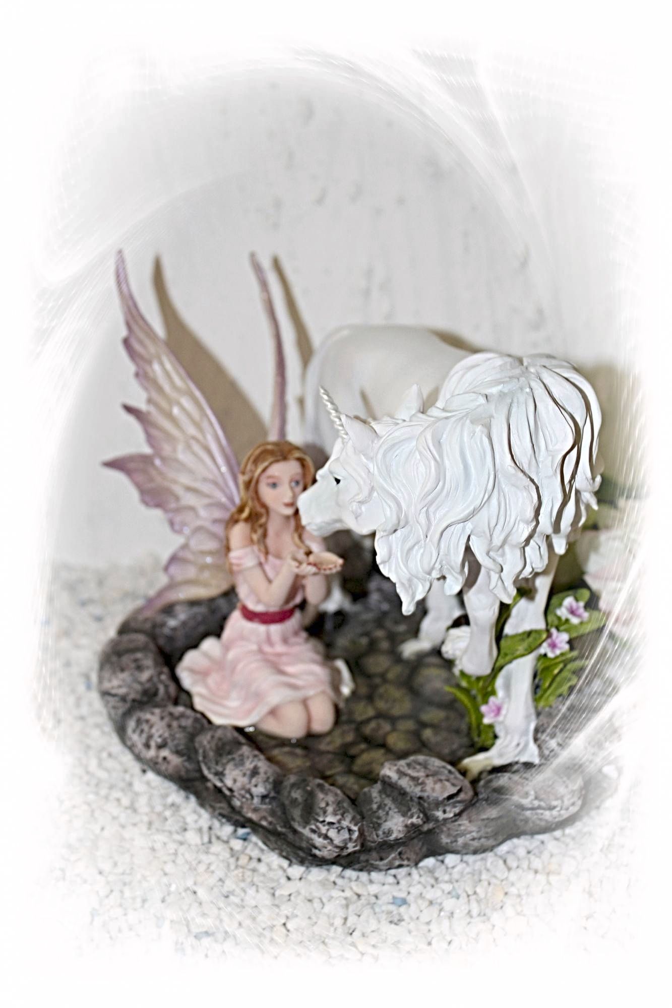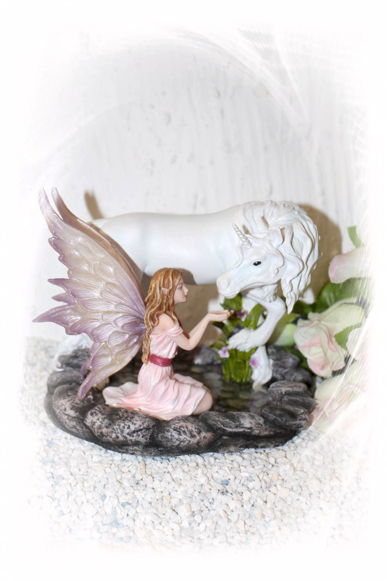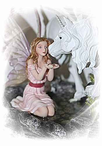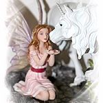 Diese Elfen mit dem Fabelwesen des Einhorns werden in feinster Handarbeit gefertigt und liebevoll von Hand bemahlt.