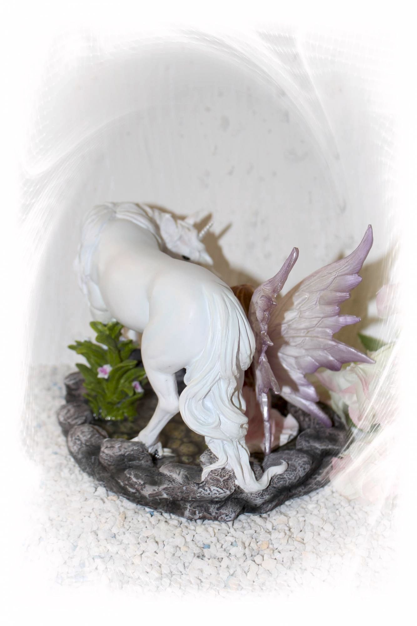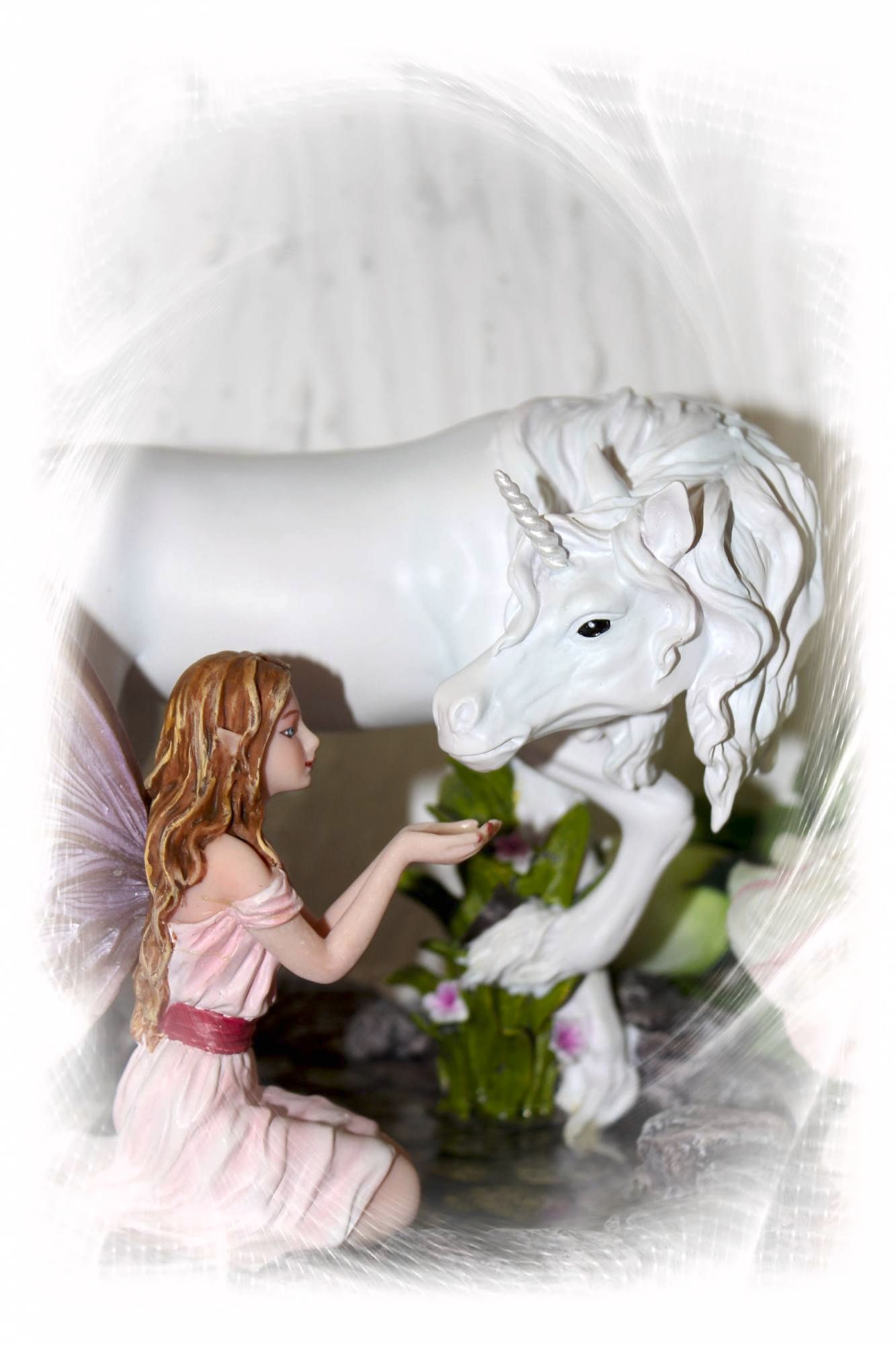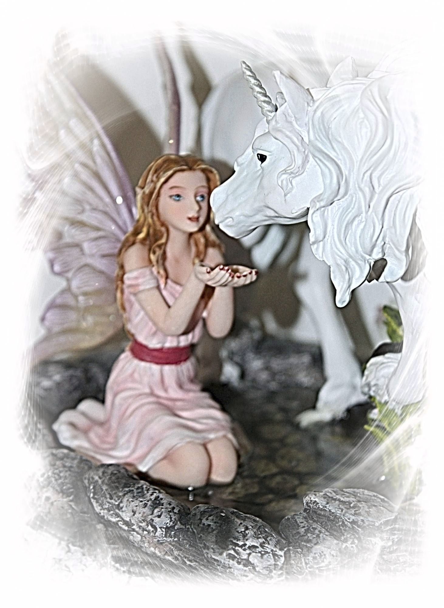 Diese Elfen mit dem Fabelwesen des Einhorns werden in feinster Handarbeit gefertigt und liebevoll von Hand bemahlt.