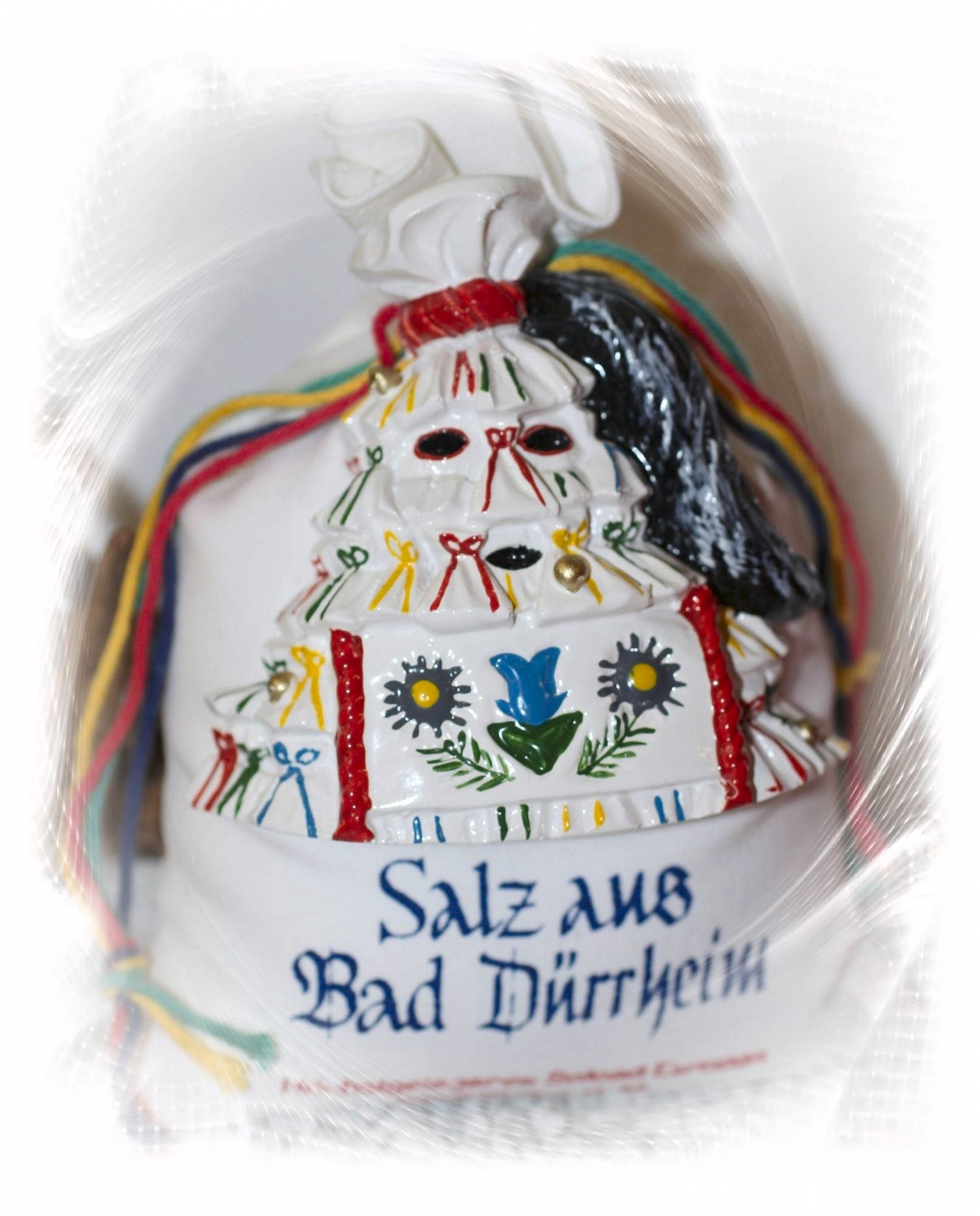 Zugebunden wird der Salzsack mit den vier Farben der Narrenzunft Bad Dürrheim und mit feinem Jodsalz gefüllt.