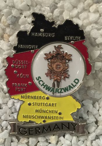 Als Deutschlandkarte mit eingearbeitetem Schwarzwaldwappen Kuckucksuhr