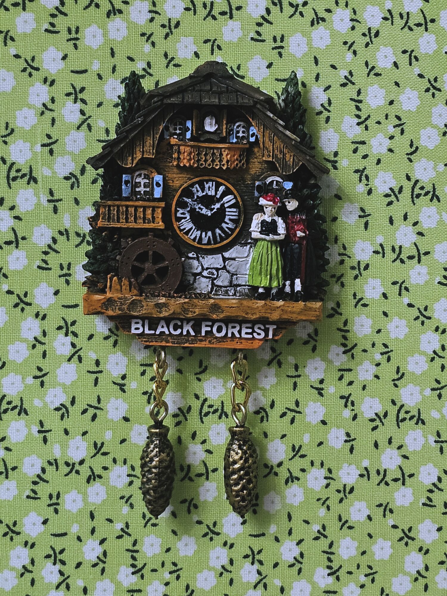 Sehr schöner Magnet als Kuckucksuhr mit Zapfen