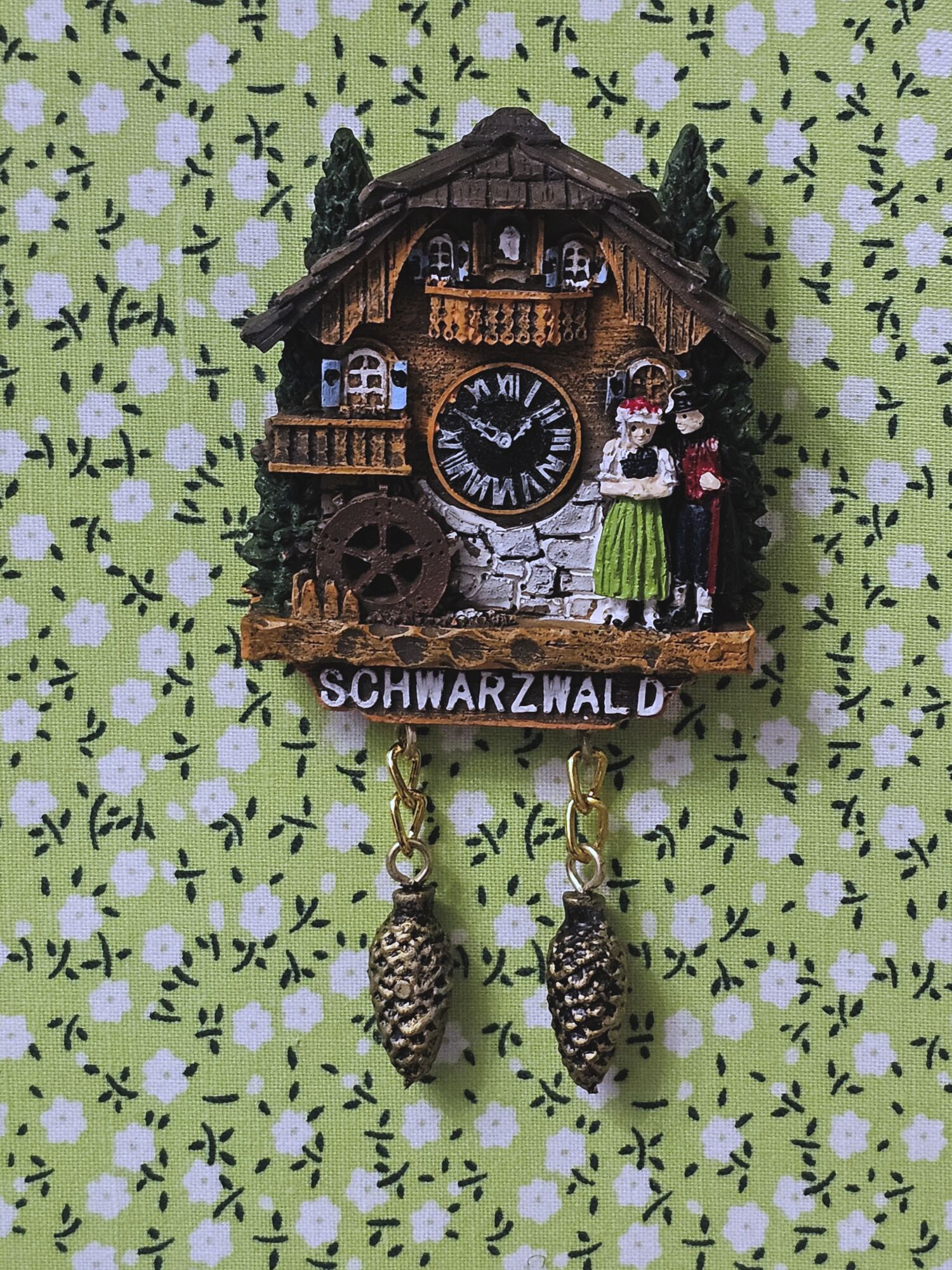 Sehr schöner Magnet als Kuckucksuhr mit Zapfen