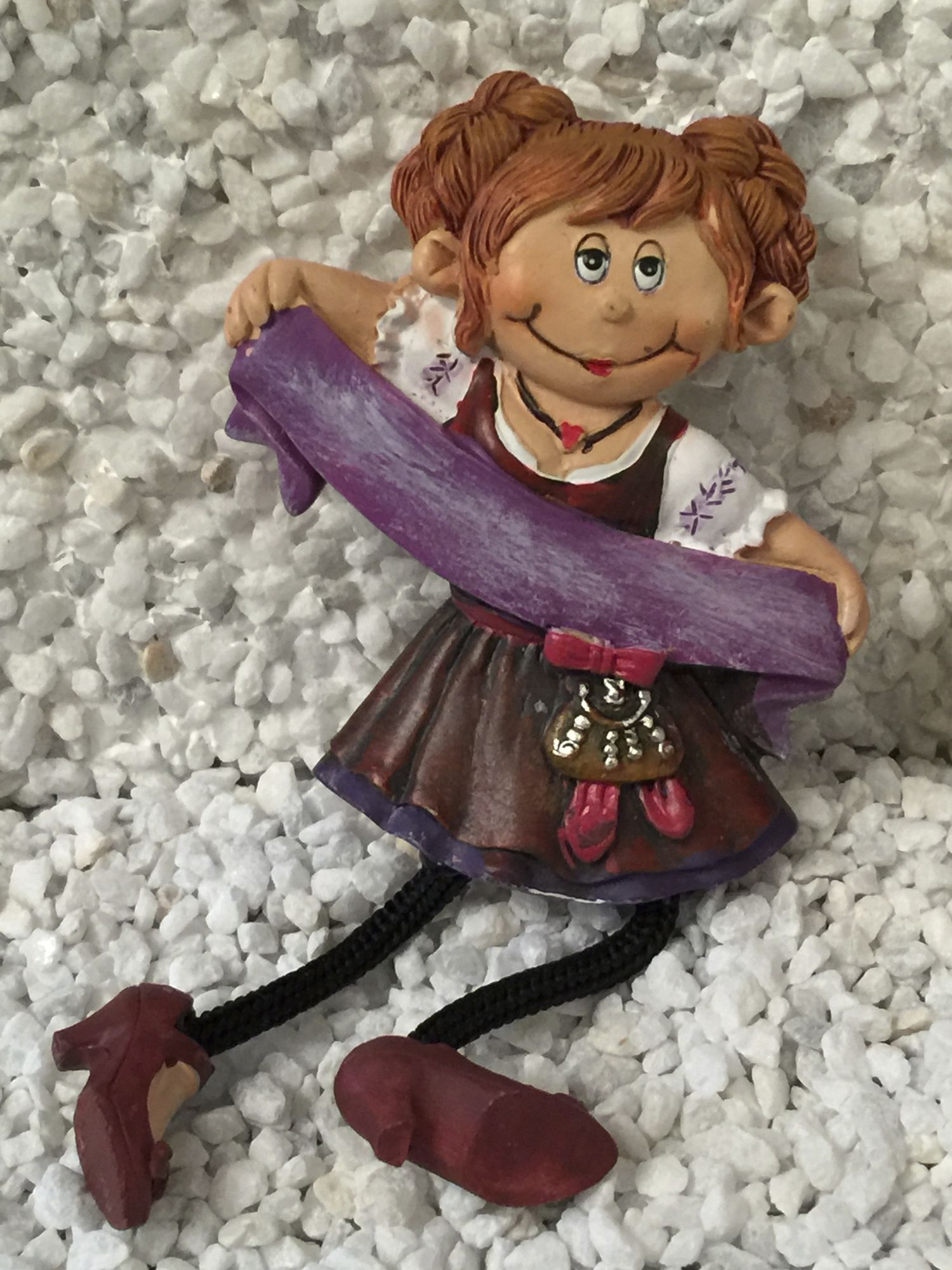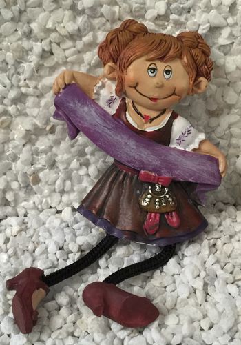 Süße kleine handgefertigte Schwarzwaldfigur als Schwarzwälder Dirndl mit beweglichen  Beinen.